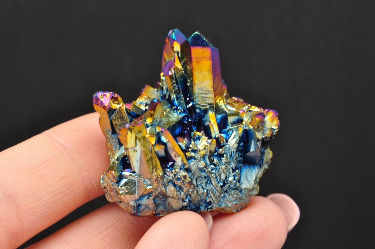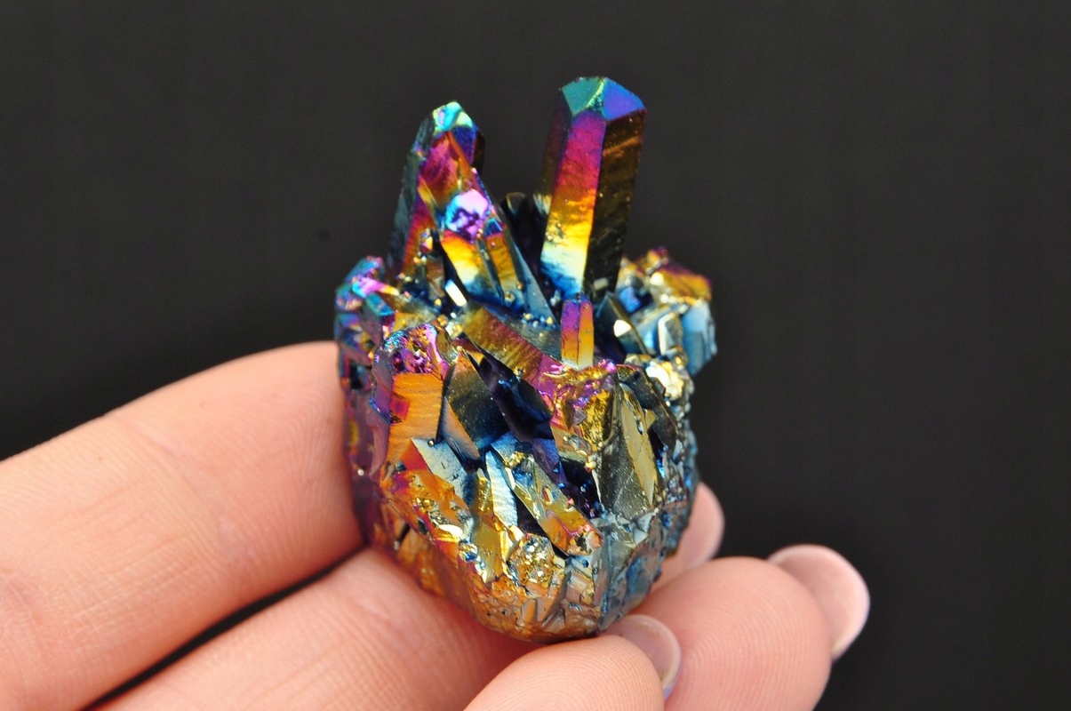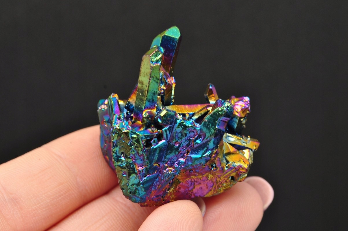 Аура-кварц -природний мінерал, що переливається тисячами кольорів. Відрізняє їх райдужність - явище мерехтіння кольору (розлитого бензину), що виникає в результаті інтерференції білого світла на поверхні оптично неоднорідних, прозорих і напівпрозорих каменів. Райдужність в аура-кварцах спричинена покриттям їх поверхні частинками оксиду металів, таких як титан, мідь, золото, срібло, ніобій, залізо або платина. Кристал поміщають у вакуумну камеру, де кварц нагрівають до заданої температури, а потім у камеру додають пари металу. Атоми металу зв’язуються з поверхнею кристала, надаючи їй райдужного металевого блиску.