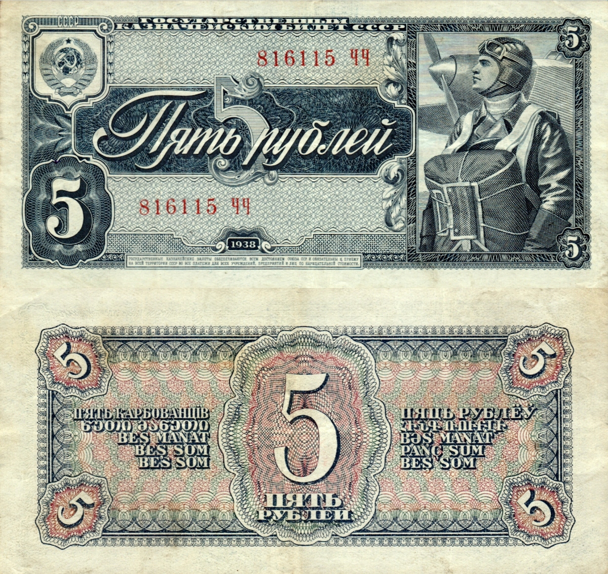 # ROSJA ZSRR - 5 RUBLI - 1938 - P-215 - VF