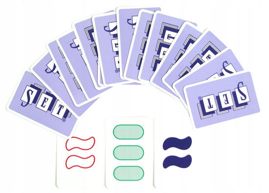 Дванадцять карток кладуть на стіл зображенням догори. Усі учасники дивляться на них одночасно. Мета гри - знайти набори. Кожна картка має 4 особливості: форма (овал, хвиля, ромб), колір (червоний, фіолетовий, зелений), заливка (повна, частково, немає) і кількість елементів (1, 2 або 3).