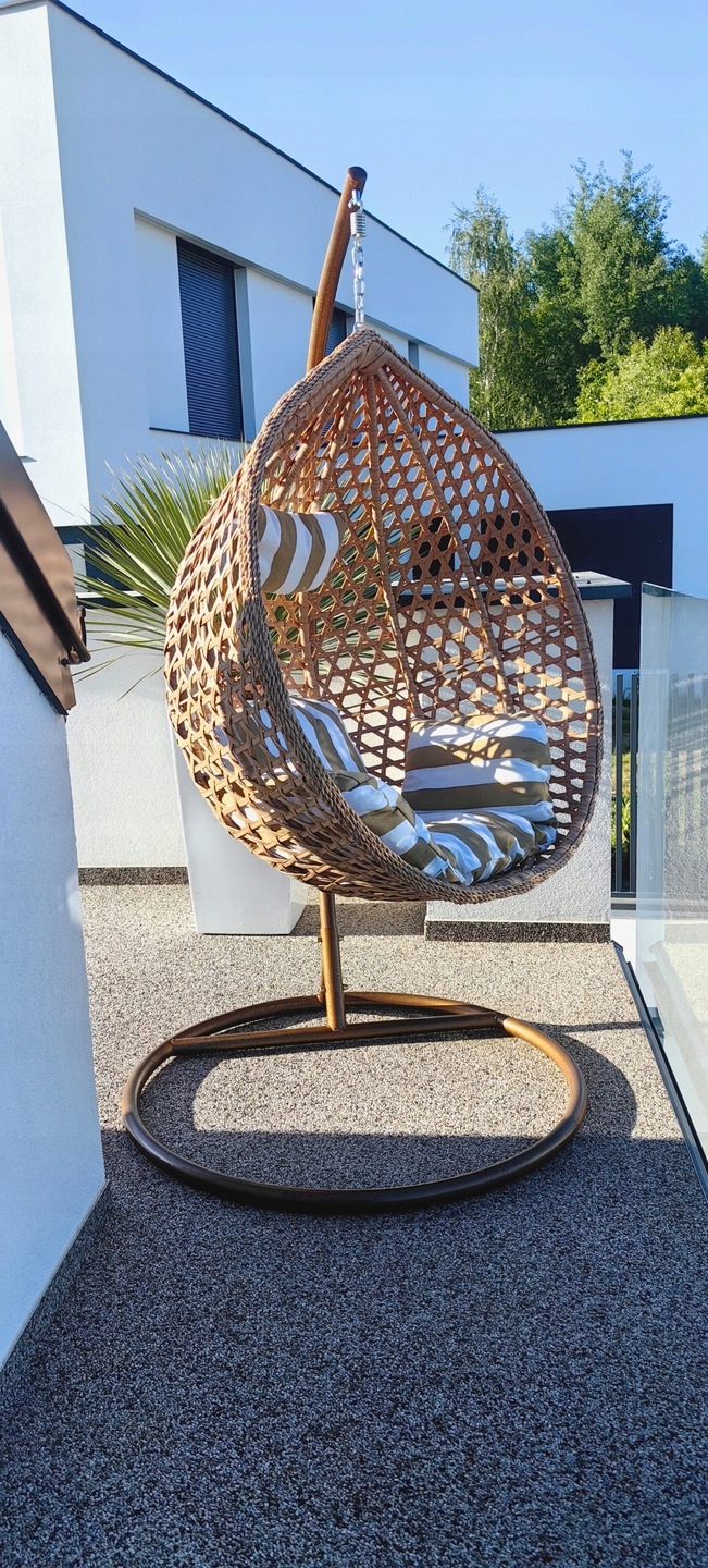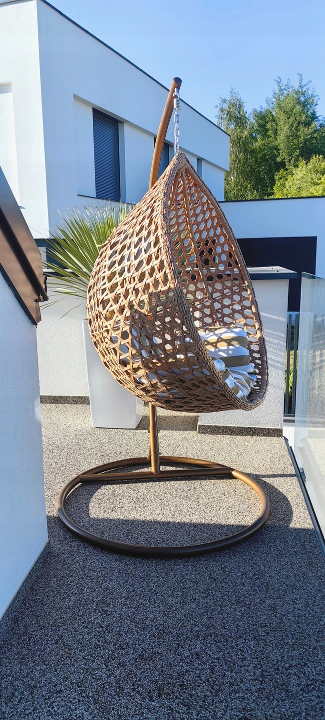 гойдалки з technorattan ідеально працює в саду , на терасі або балкон . Це також буде чудовим доповненням до будинків та квартир . Його овальна форма змушує вас сидіти в ньому комфортно . Ідеально підходить для відпочинку в теплі літні вечори в саду, а також прохолодні вечори в домашньому каміні.