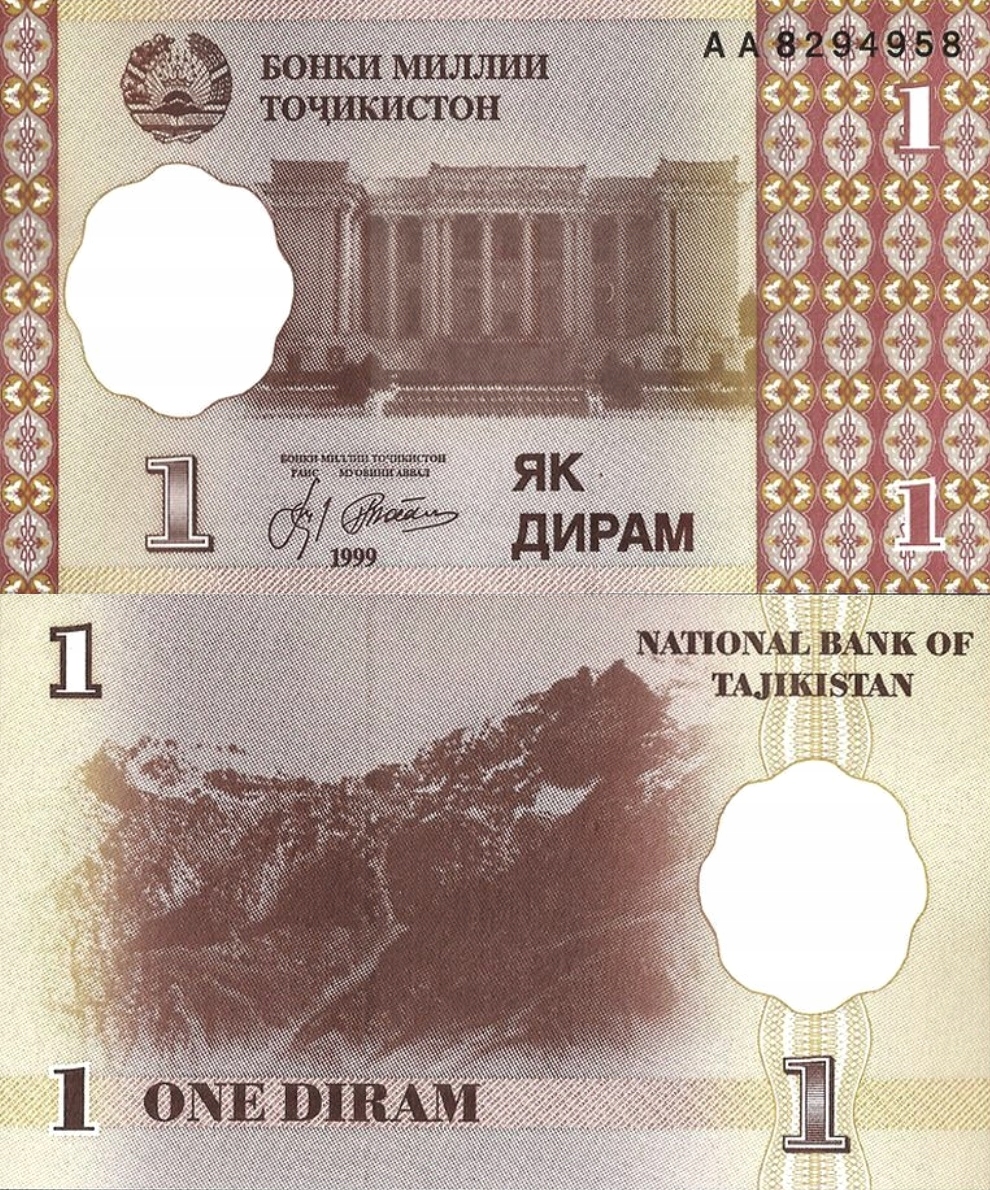 # ТАДЖИКИСТАН - 1 РУБЛЬ - 1999 - P-10 - UNC серії AA