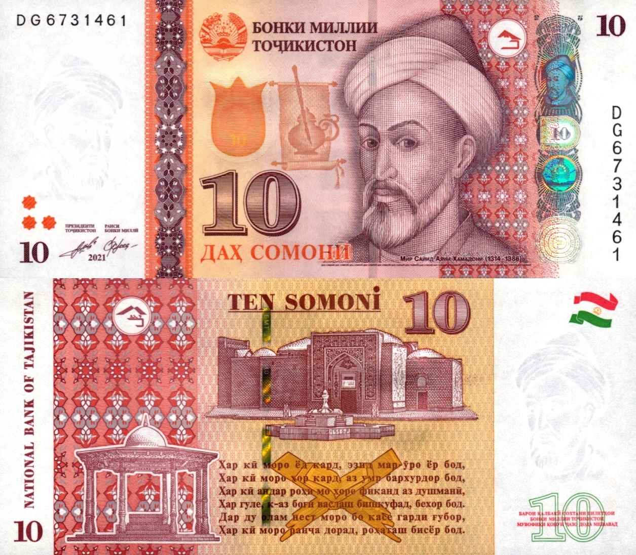 # ТАДЖИКИСТАН - 10 СОМОНІ - 2021 - P-24d - UNC