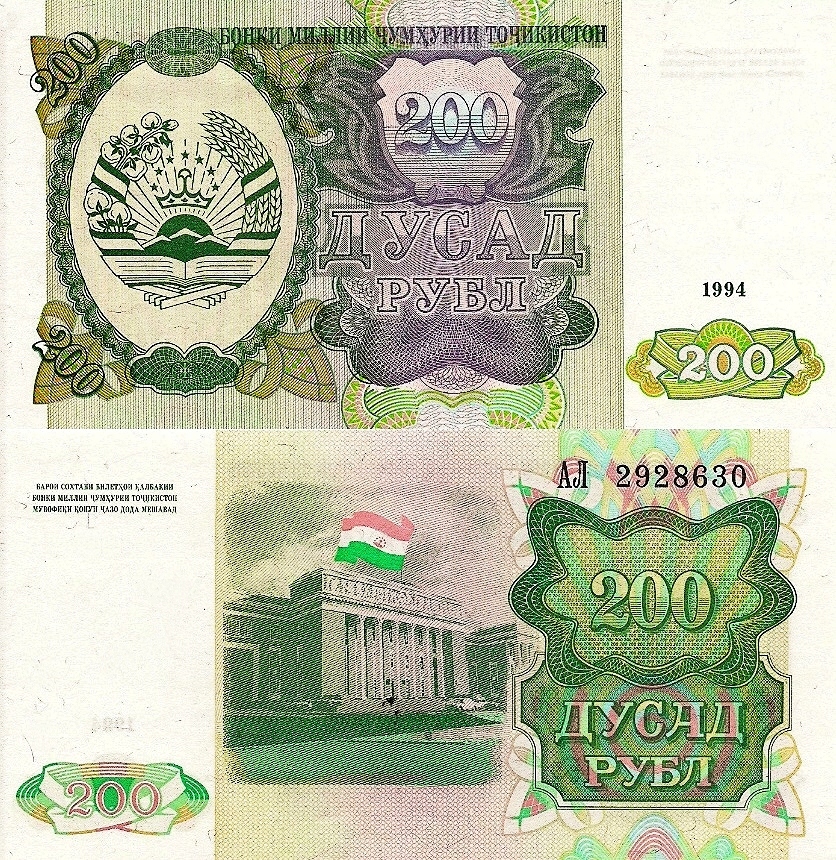 # ТАДЖИКИСТАН - 200 РУБЛІВ - 1994 - P-7 - UNC