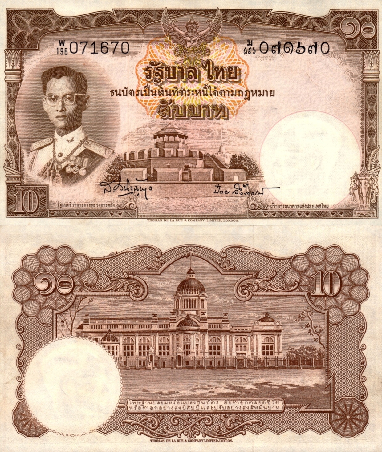 # ТАЇЛАНД - 10 БАТ - 1955 - P-76d - AU / XF +