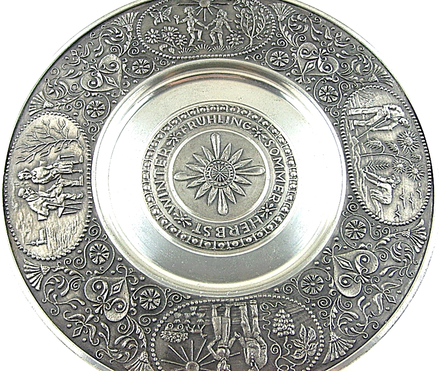 # TALERZ DEKORACYJNY z CYNY - 4 PORY ROKU, średnica 26,3 cm
