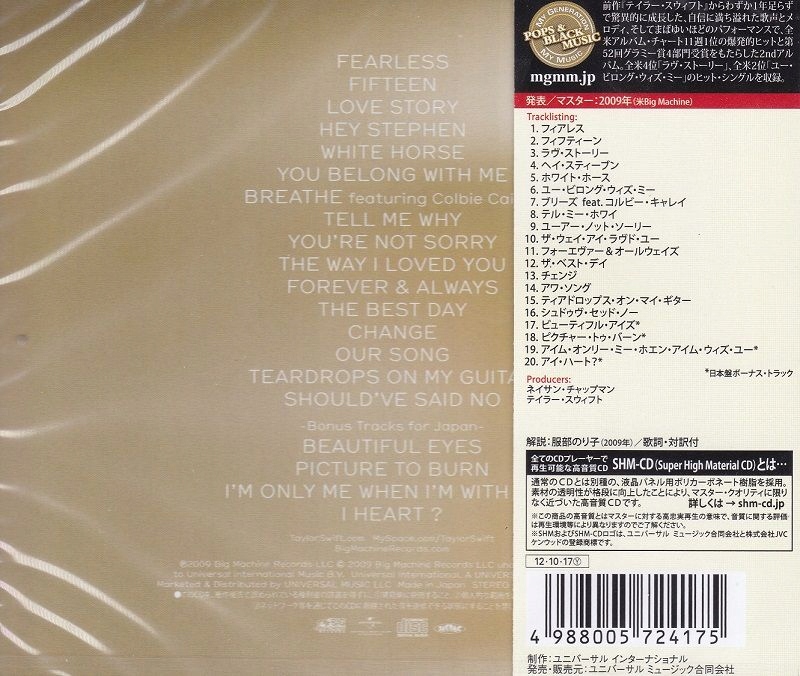 SWIFT, TAYLOR - FEARLESS (1 SHM-CD) - JAPANESE EDITION