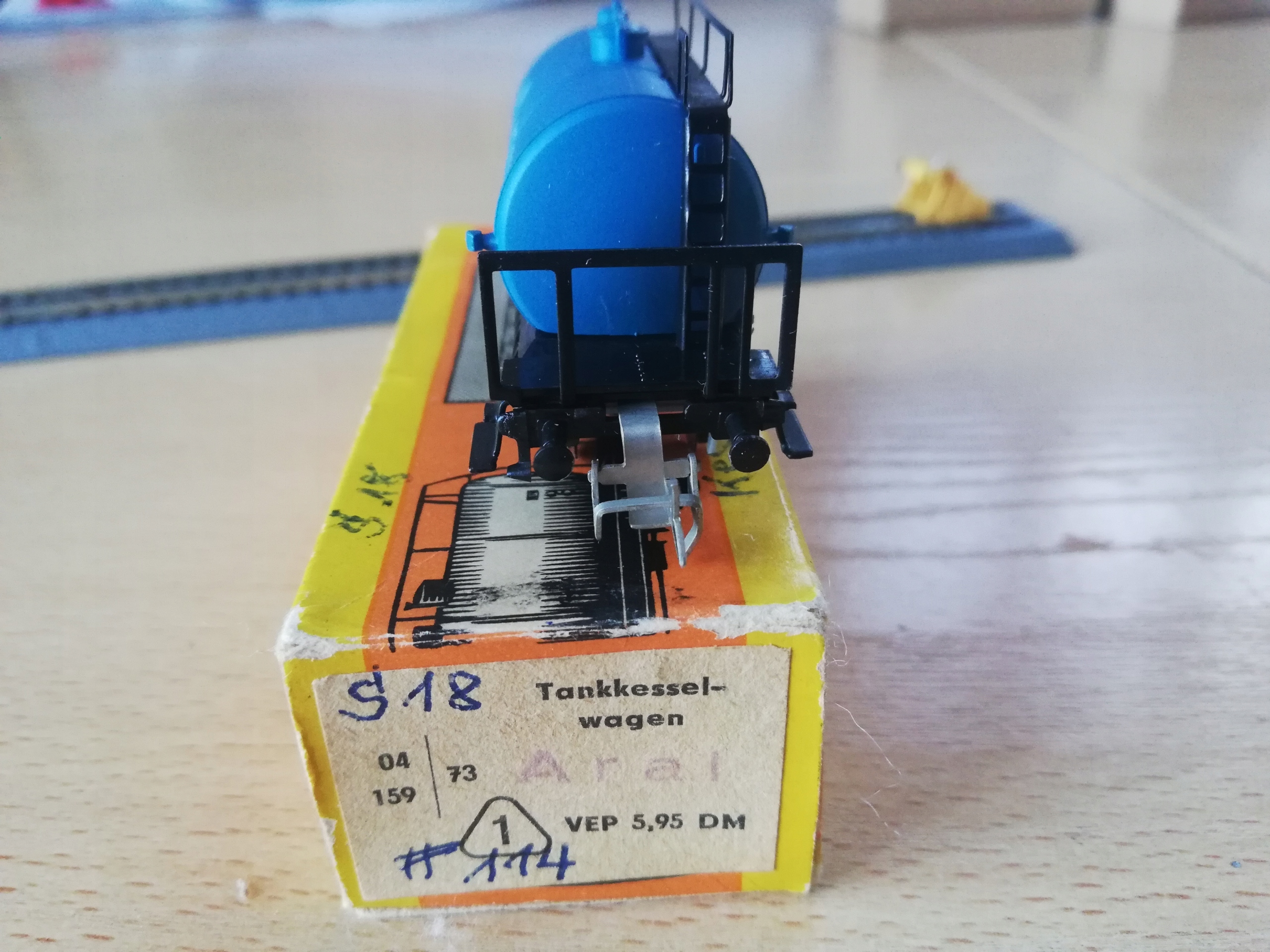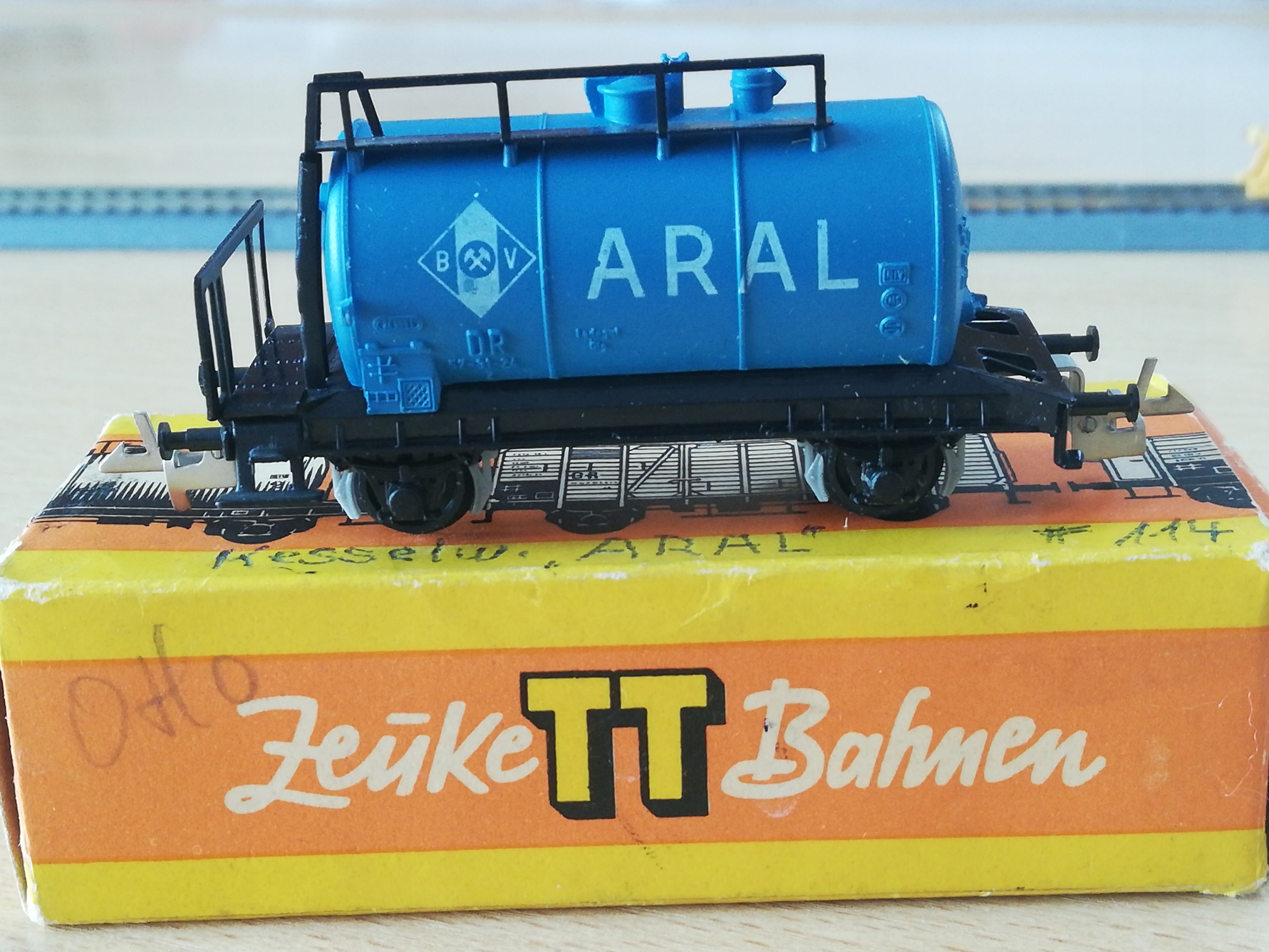 ...двовісна цистерна АРАЛ в маркуванні Управління залізниці ДР, масштаб ТТ (1:120). Модель Zeuke TT. Модель б/в, стан дуже хороший. Бампери повні, стяжки повні, пластикові диски чисті. Оригінальна упаковка зі слідами використання. Унікальна модель.