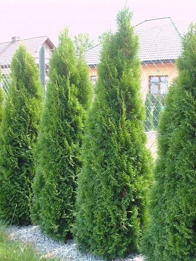 Кущ соковитого зеленого кольору, пропорційної форми. Не буріє навіть у сувору зиму. Виростає до 4 м, зберігаючи форму правильного вузького конуса. Гарно виглядає в стильних садах і підходить для неформованих рядів і стрижених живоплотів. Гілочки молодих екземплярів вертикальні, блискучі. Вони постійно (навіть взимку) зберігають свій яскравий зелений колір. У вирощуванні це дерево невибагливе до грунту і клімату. Він дуже стійкий до низьких температур. Для отримання щільної живоплоту ми висаджуємо туї через кожні 60 см.