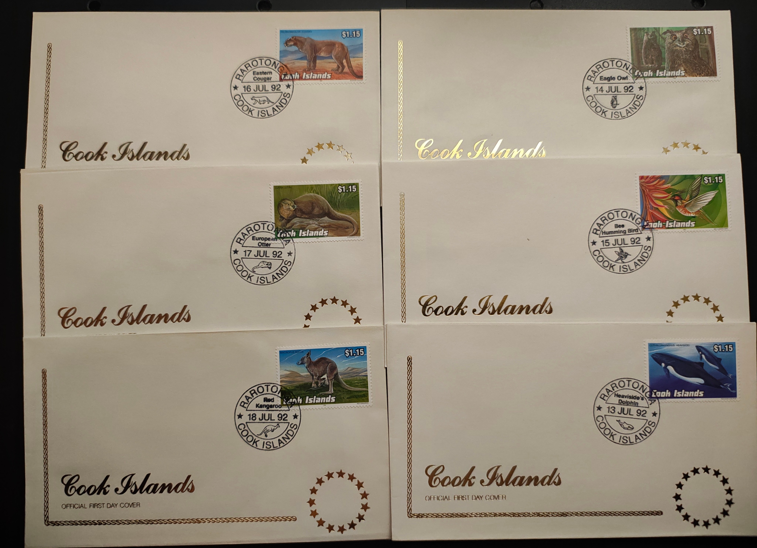 !! ТВАРИНИ - ОСТРОВИ КУКА 1992 - 6 КОНВЕРТІВ FDC - ДУЖЕ ГАРНИЙ СТАН!!