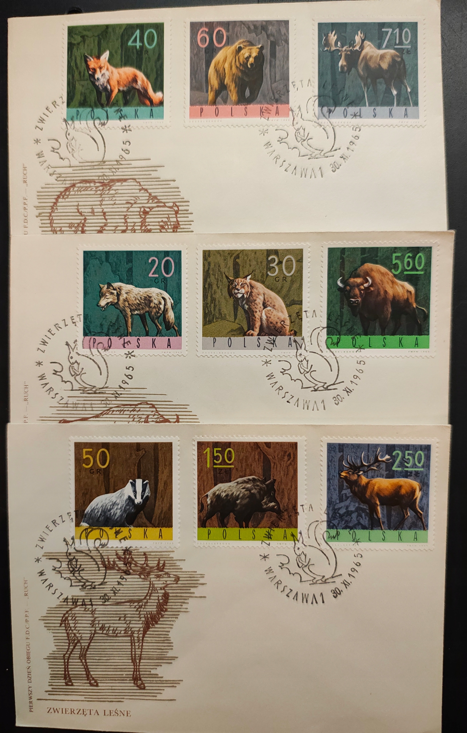 !! ТВАРИНИ - ПОЛЬЩА 1965 - 3 КОНВЕРИ FDC - ДУЖЕ ХОРОШИЙ СТАН!!
