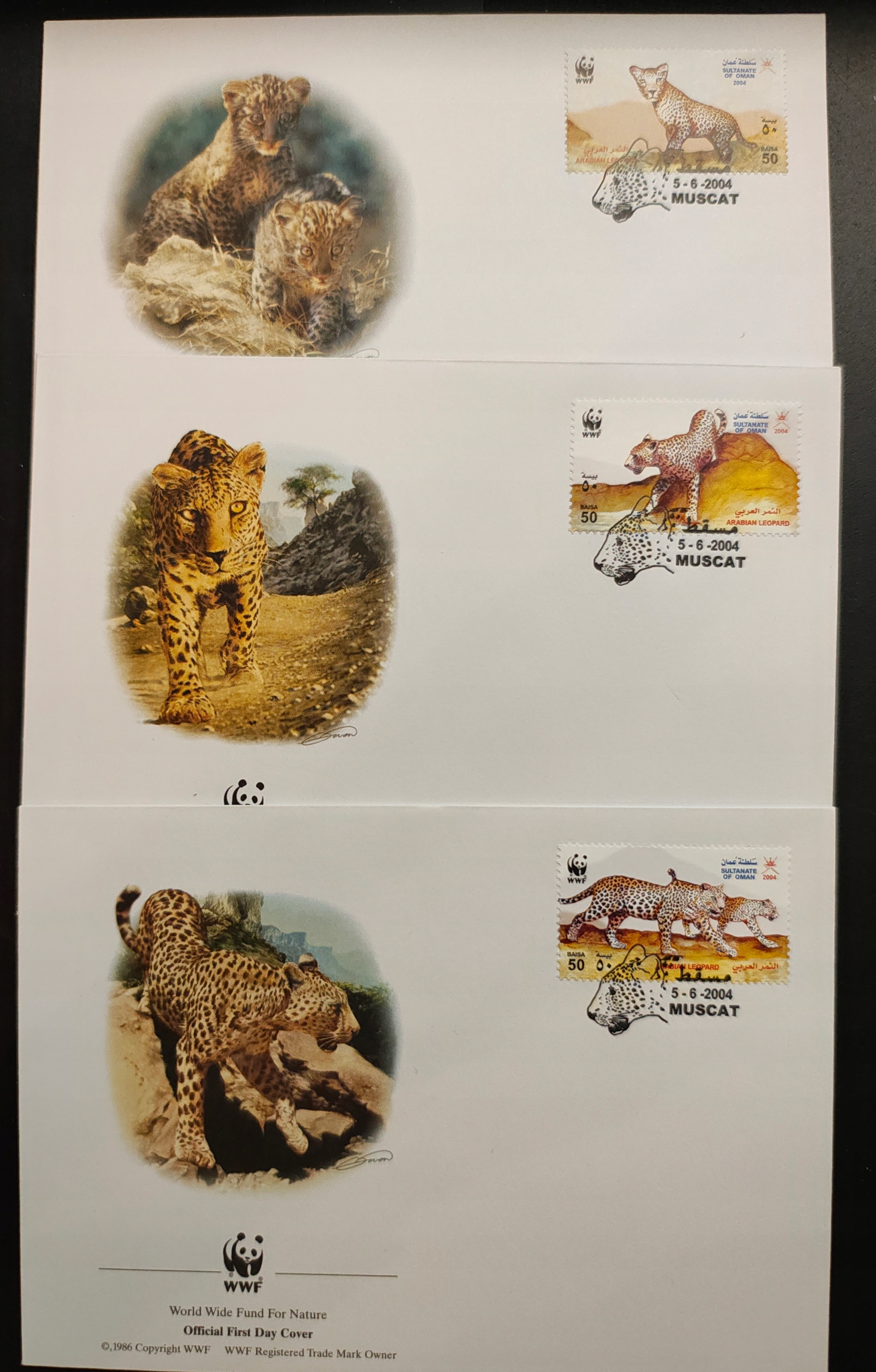!! ТВАРИНИ ПТАХИ WWF - ОМАН 2004 - 3 КОНВЕРИ FDC - ДУЖЕ ГАРНИЙ СТАН!
