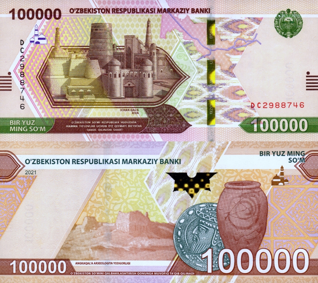 # УЗБЕКИСТАН - 100000 SOM - 2021 - P-NEW - UNC
