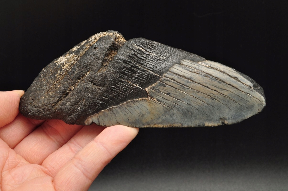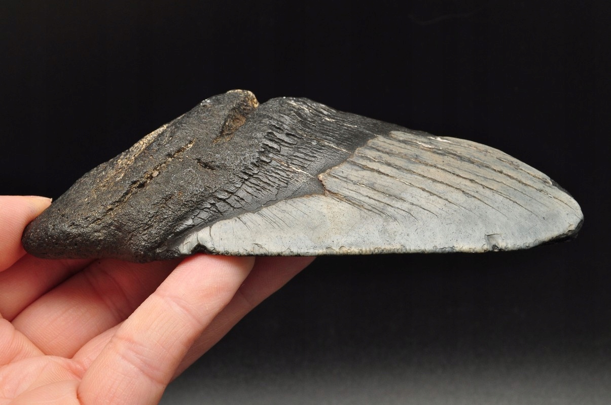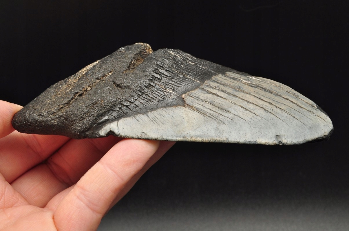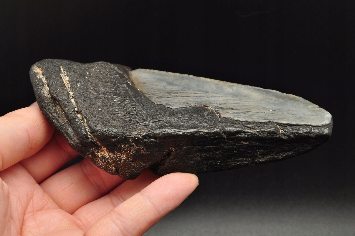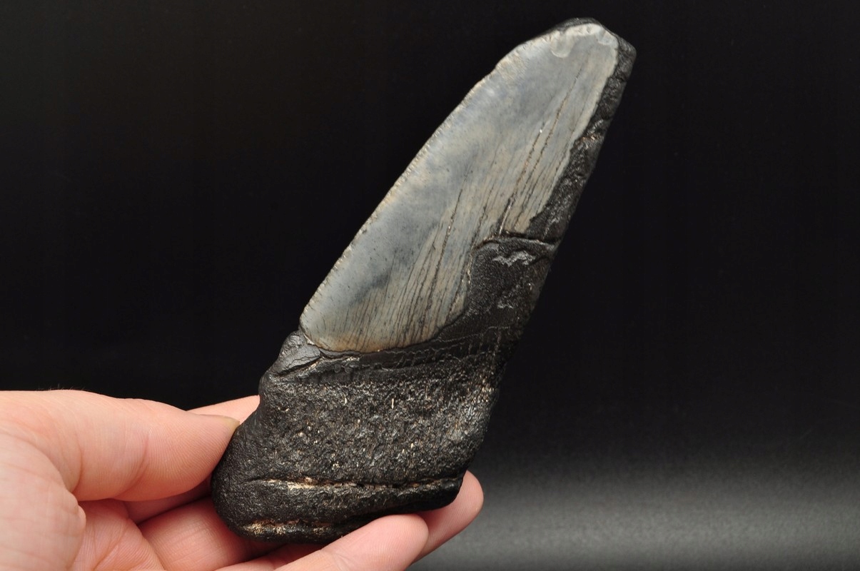 ДУЖЕ ДОБРЕ ЗБЕРІГЛАСЯ ПОЛОВИНА ЗУБА ВИМИРЛОЇ АКУЛИ МЕГАЛОДОНУ. 100% ОРИГІНАЛЬНА ВИКОПЛІННЯ ДЛЯ КОЛЕКЦІЇ АБО НА ПОДАРУНОК.