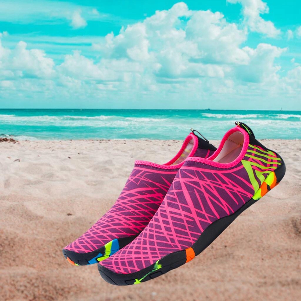 : Безпека: підошви виготовлені з матеріалів EVA з відмінною повітропроникністю та протиковзанням, і широко використовуються у виробництві спортивного взуття Можна піддаватися спекотному пляжу Зручний матеріал: верх гладкий і еластичний, виготовлений з матеріал для дайвінгу, який пропускає повітря та швидко сохне. Подібно до шкарпеток, він дає відчуття чудової гнучкості та комфорту в носінні. Взуття стискається, його дуже зручно носити, коли ви виходите на вулицю. Унікальний дизайн: гладка горловина взуття, створена для догляду за вашим щиколотки Унікальний дизайн підошви, заснований на ергономічній формі, яка має хороші характеристики в подушці, яка протистоїть ударам Різні стилі та розміри: наше взуття має різні розміри, які підходять для дорослих, продукт містить посилання на таблицю розмірів Випадки: ідеально підходить для пляжу, плавання, серфінгу, плавання басейн, вітрильний спорт, водний спорт, катання на човнах, каякінг, пляжний волейбол, риболовля, прогулянки, водіння, відпочинок тощо. Особливо для сімейних подорожей!