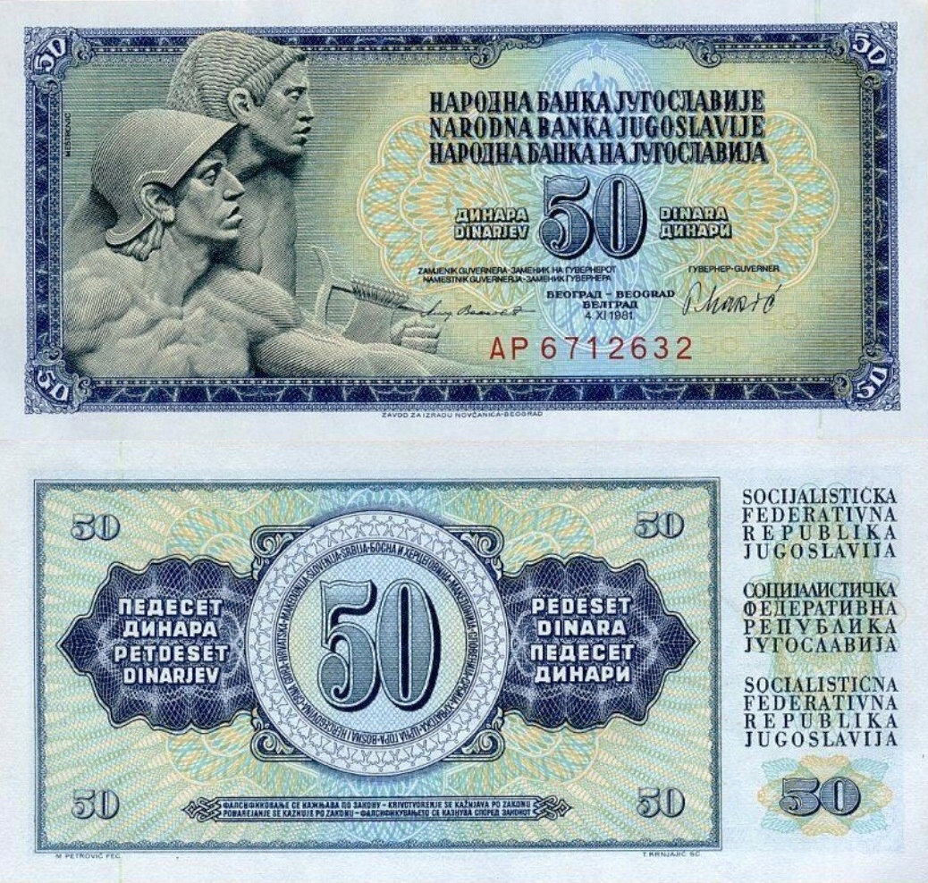 # ЮГОСЛАВІЯ - 50 ДИНАРІВ - 1981 - P-89b - UNC