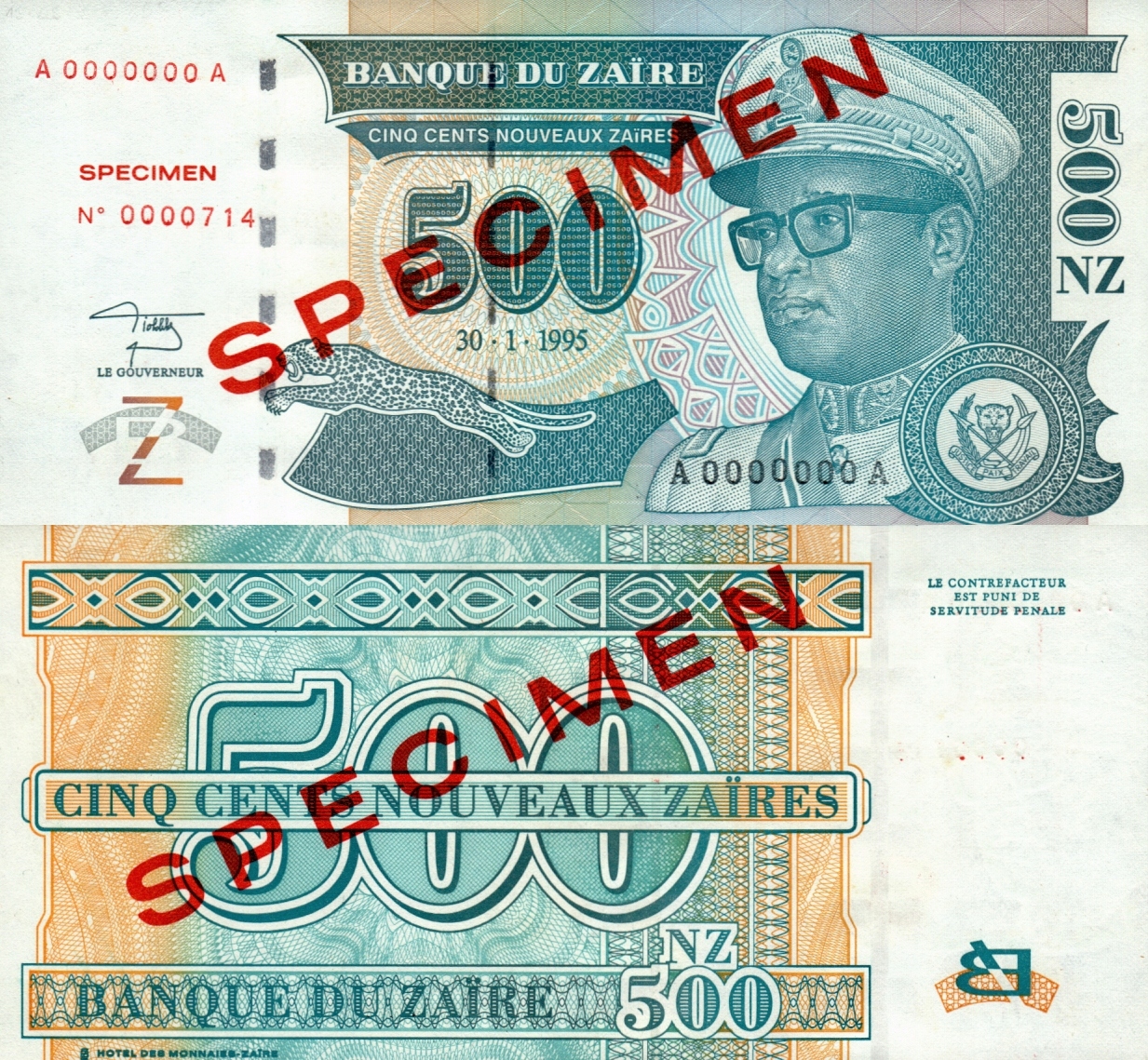 # ЗАЇР - 500 ЗАЇРІВ - 1995 - P-65 - UNC (зразок)