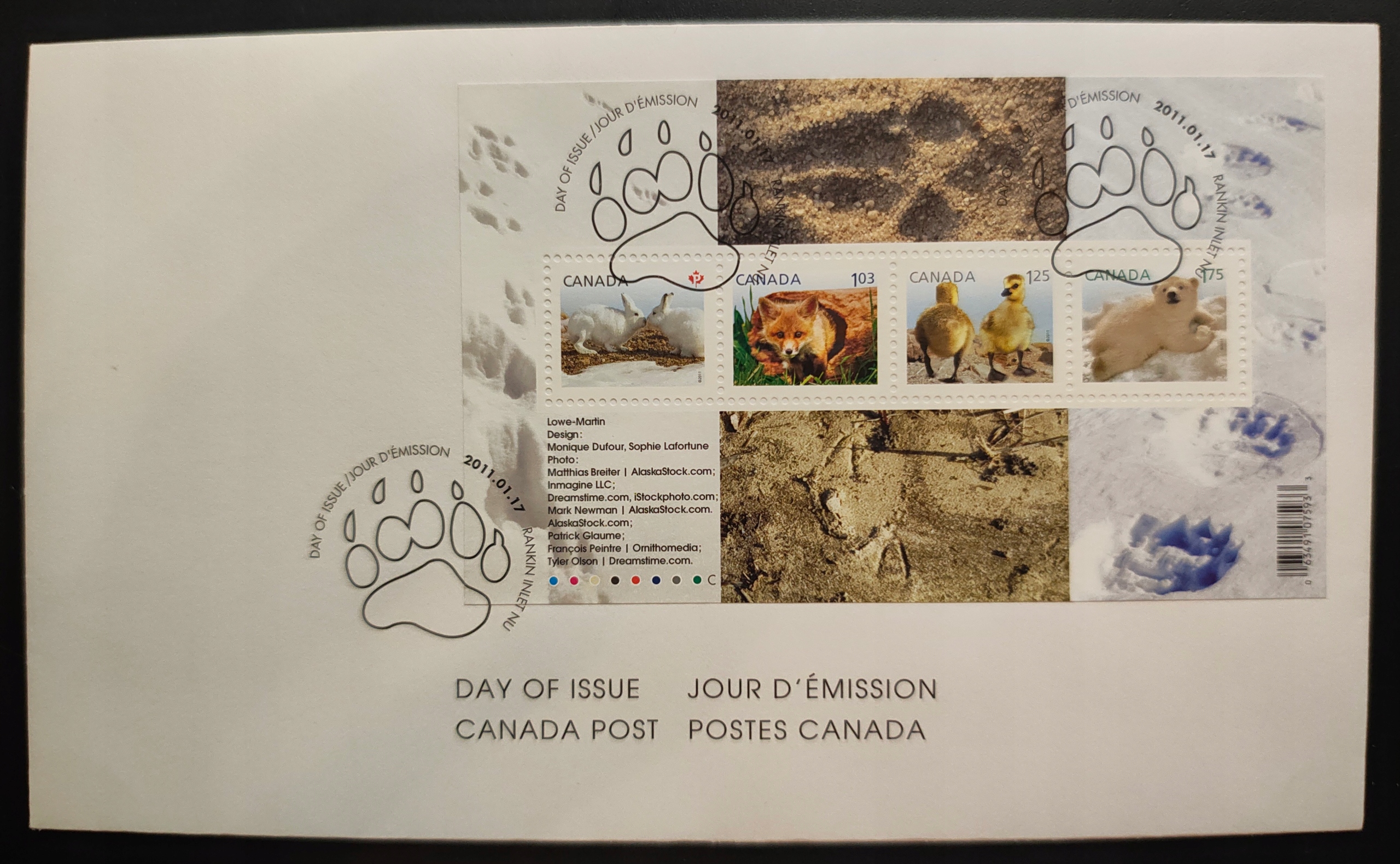 !! ZWIERZĘTA - KANADA 2011 - KOPERTA FDC - STAN BDB !