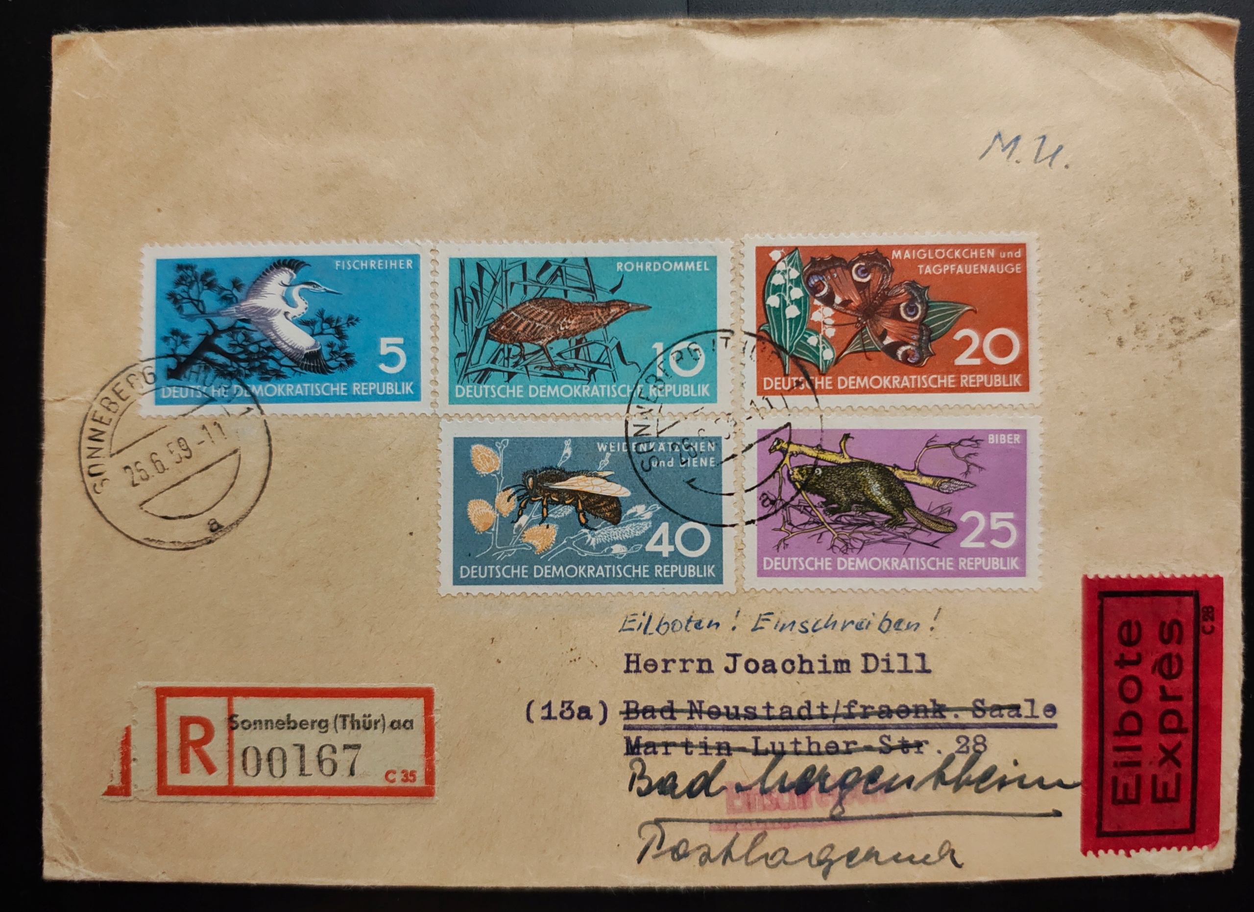 !! ZWIERZĘTA - NIEMCY 1959 - KOPERTA - LIST POLECONY - STAN BDB !