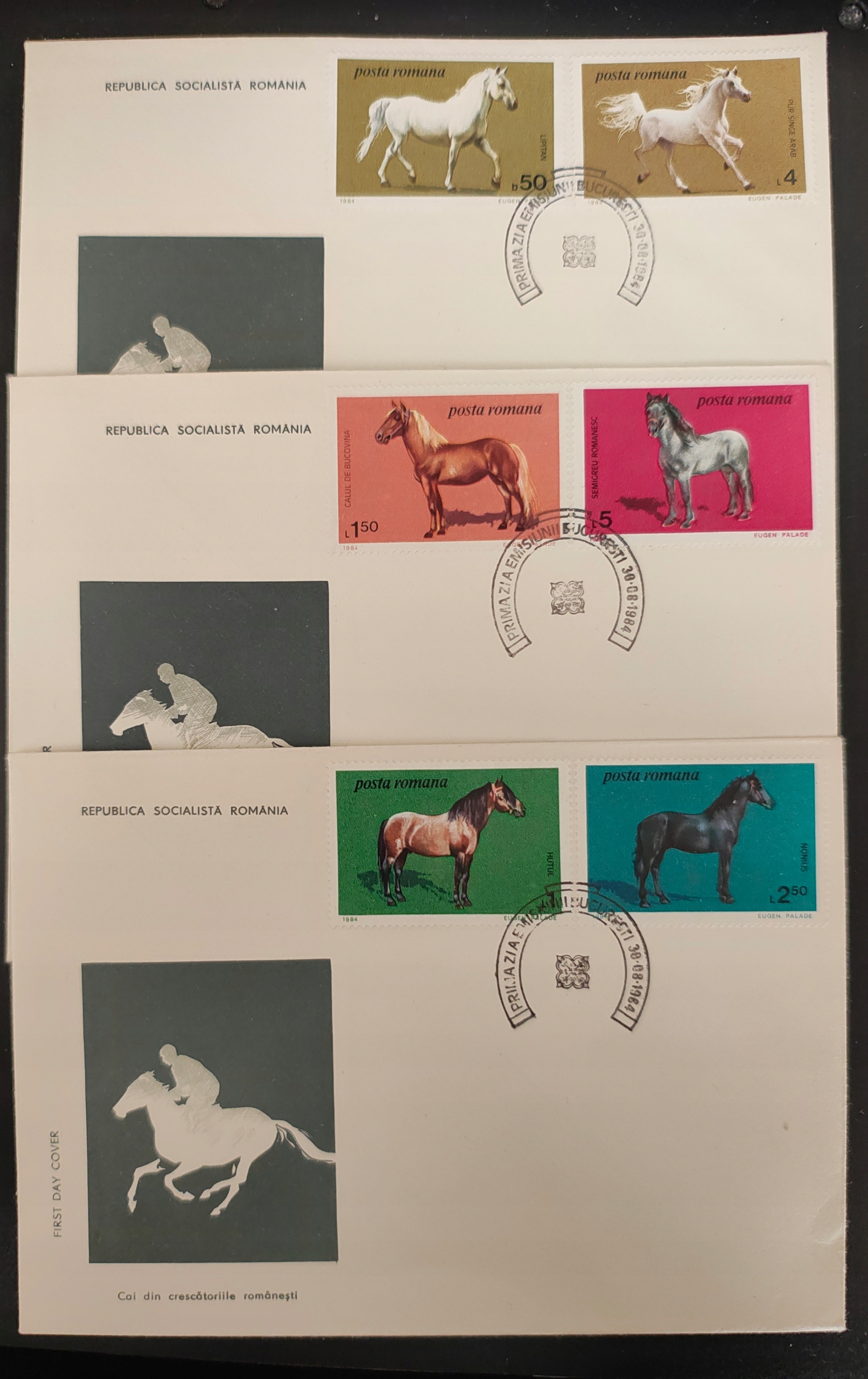 !! ZWIERZĘTA KONIE - RUMUNIA 1984 - 3 KOPERTY FDC - STAN BDB !!