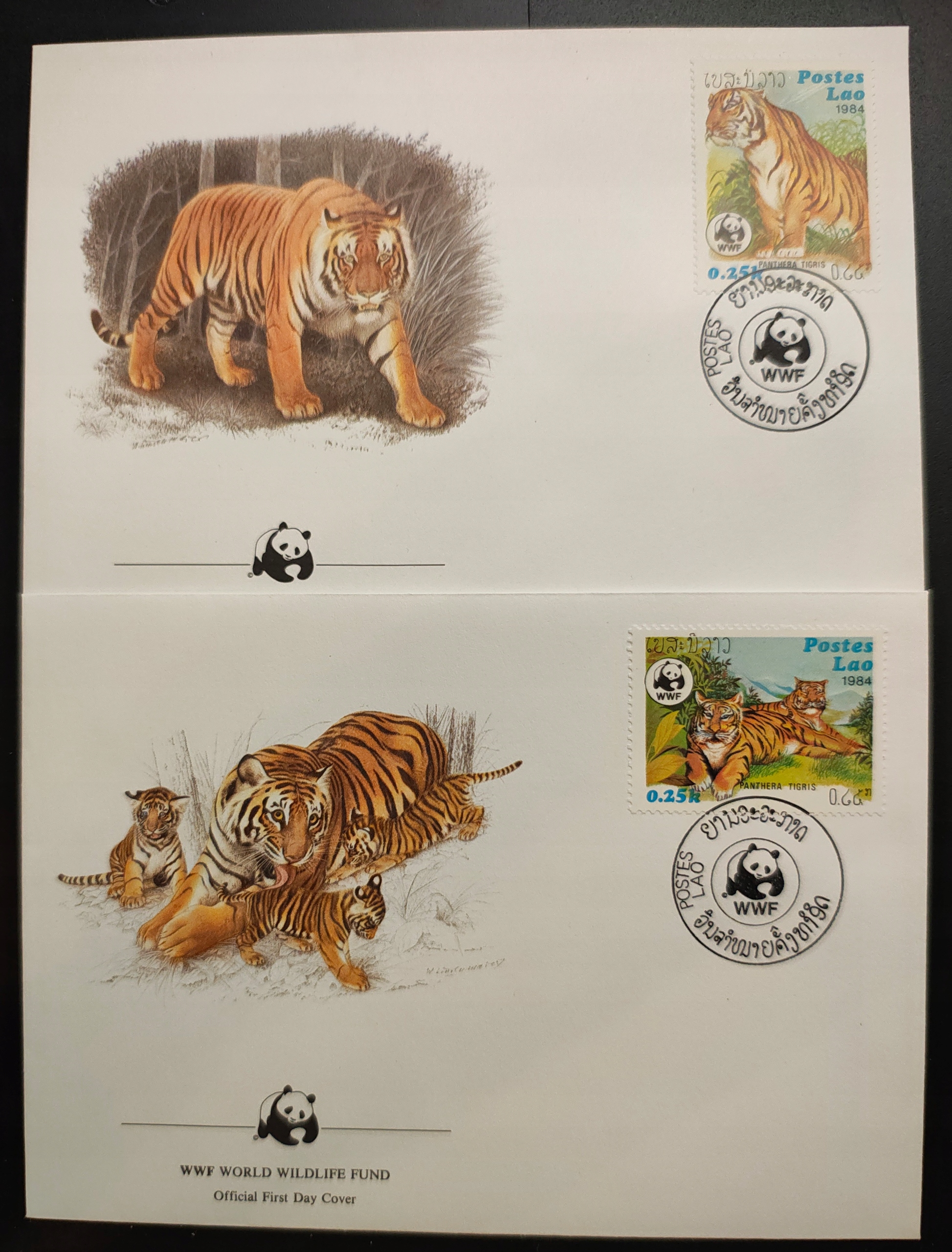 !! ZWIERZĘTA WWF - LAOS 1984 - 2 KOPERTY FDC - STAN BDB !