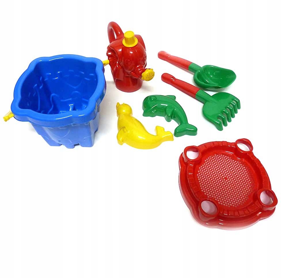 У набір входить відерце «Замок» із ситечком, 2 формочки для дельфінів і печатка, лопатка, граблі та лійка «Слон». Наша дитина точно не буде нудьгувати на пляжі. Створення замків з піску розвиває у дитини уяву та активізує творчу активність.