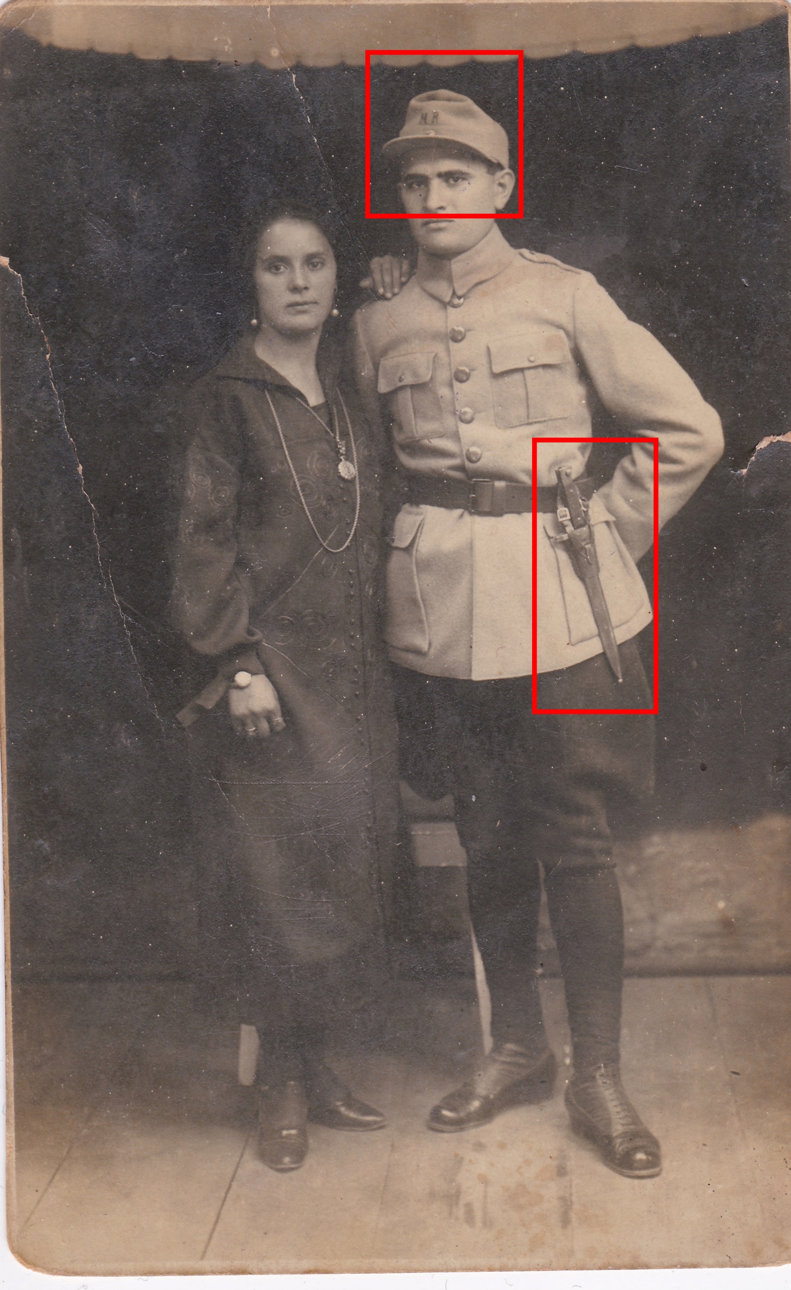 001R ŻOŁNIERZ Z DAMĄ BAGNET CZAPKA 1918 RUMUNIA