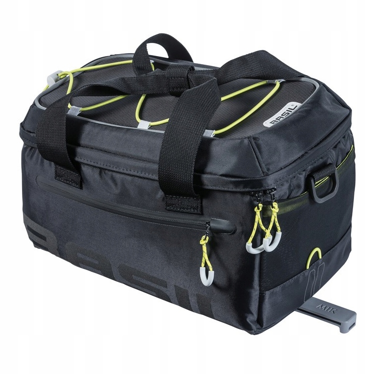 Basil Miles Trunkbag MIK — це сумка, призначена для встановлення на велосипедній стійці. Він виготовлений з водонепроникного матеріалу, тому навіть під невеликим дощем вміст залишиться сухим. Він оснащений вбудованою ручкою та плечовим ременем для зручного перенесення. Basil Miles Trunkbag MIK має кишені на блискавці. Світловідбиваючі елементи покращують вашу видимість і безпеку в темряві.