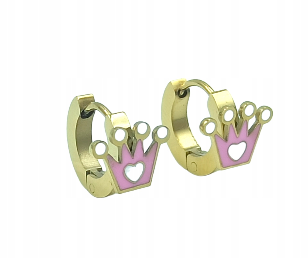 Дитячі круглі сережки з коронками з хірургічної сталі золотистого кольору.