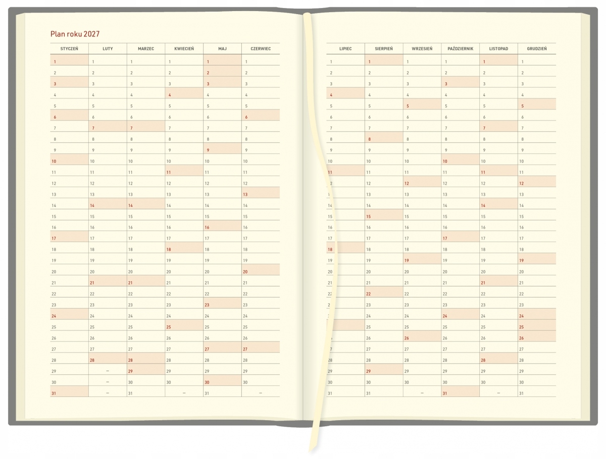 полегшує пошук вибраного місця в календарі. Є можливість замовити додаткову стрічку (ми можемо розмістити до 3-х стрічок одного або різних кольорів в одному календарі).