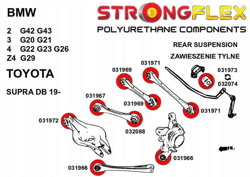 - Тип рукава заднього стабілізатора: Для BMW 2/3/4 виберіть рукав 031973. Для BMW Z4 / Toyota supra виберіть рукави 032074.