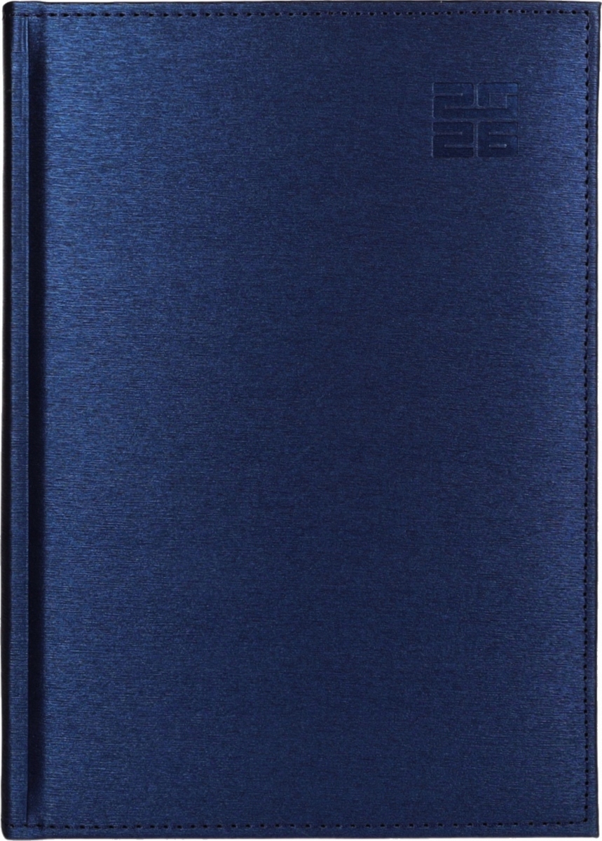 Книжковий календар 2026 A4 ТИЖНЕВИЙ З БЛОКНОТОМ білий папір з друкованими реєстрами темно-синій АЛЮМІНІЄВИЙ палітурник
