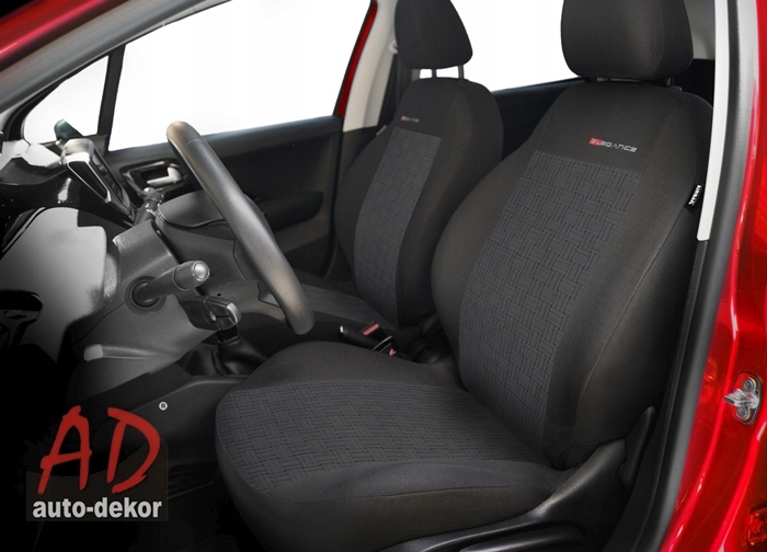 Чехли ELEGANCE оснащені регульованими застібками-липучками на передніх сидіннях, тому немає необхідності робити отвори для підголівників.