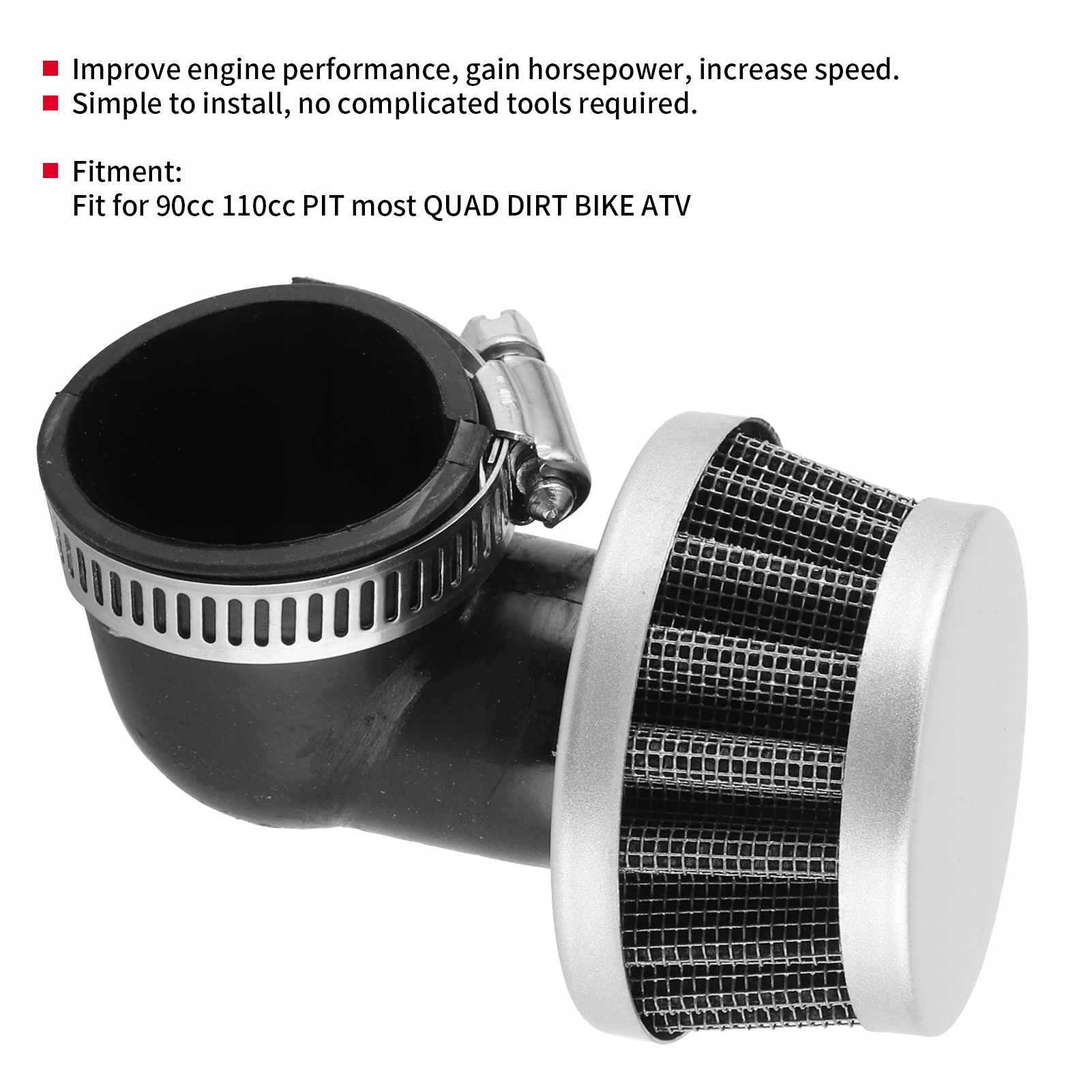 1. Згинання кутового повітряного фільтра, збігається з 90 см3 110 см3 ями на більшу частину квадроциклу ATV.