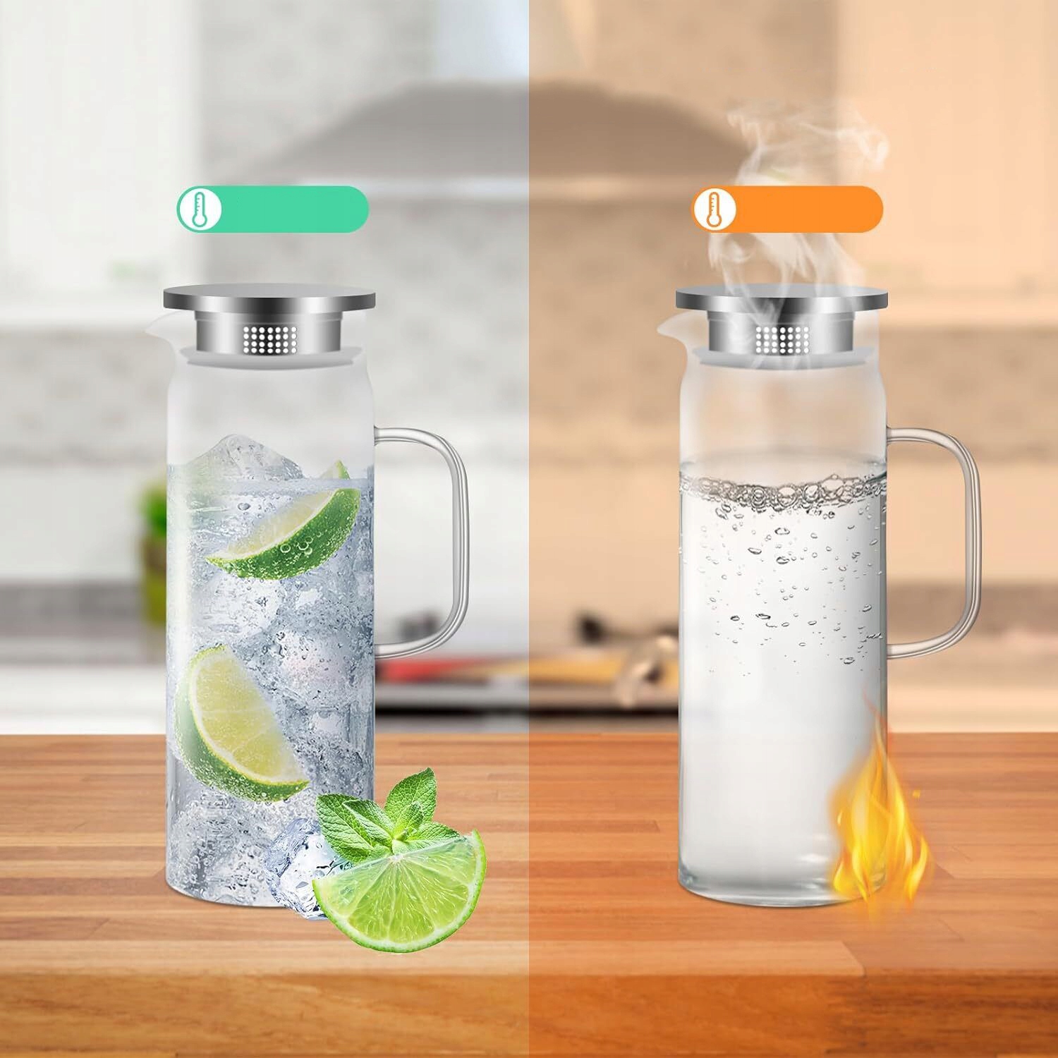 👍 【【【【【【【【【Boroczeg скляний глечик】: скляні глечики товщі, ніж звичайні скляні глечики. Виготовлений з високоякісного боросилічного скла. Наш скляний глечик може протистояти температурі від -20 ° С до 150 ° С. Товста склянка стійке до удару та високих та низьких температур. Його можна безпечно використовувати в холодильниках та печах.
