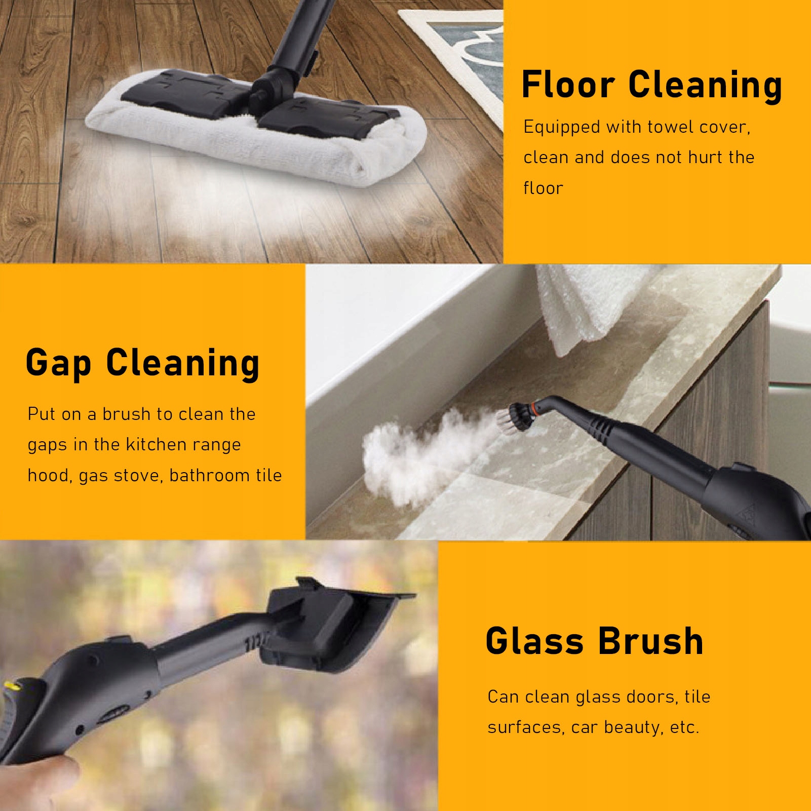 4. Портативний дизайн: електричний пароочисник поставляється з 3-метровим шнуром живлення, 2 подовженими паровими трубками, гнучким валом, паровим курком, що замикається, на ручці для постійного очищення парою.