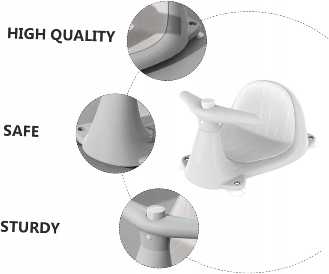 Дитяче сидіння для ванни Це дитяче сидіння для ванної має міцну присоску, яка запобігає нахилу сидіння. сидіння ванни ідеально підходить до поверхні ванни. Дитячі крісла Це дитяче крісло для ванної кімнати має спинку, завдяки чому ваша дитина матиме достатню підтримку під час купання та почуватиметься комфортно. Дитяче сидіння виготовлено з матеріалів PP і TPE, зручне, безпечне і міцне, просте у використанні. Безпечне крісло для ванни, крісло для душа та дитяче сидіння для ванної має міцну присоску, яка запобігає нахилу сидінь. Стілець для душу – це симпатичний нековзкий стілець для душу, виготовлений із великого твердого поліпропіленового матеріалу та має розміри 3800 x 2700 x 1740 см 1493 x 1061 x 684 дюйма Попередження Не підходить для дітей віком до 10 років. Для використання під наглядом дорослих Попередження Лише для домашнього використання