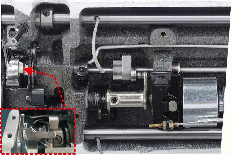 Вбудований у головку машини - таке технічне рішення (без підвішеного двигуна під головкою швейної машини та приводного ременя) усуває небажані вібрації та збільшує потужність машини.