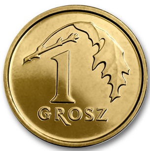 Обігова монета в чистому стані номіналом 1 грош, відкарбована в 2015 році на Королівському монетному дворі.