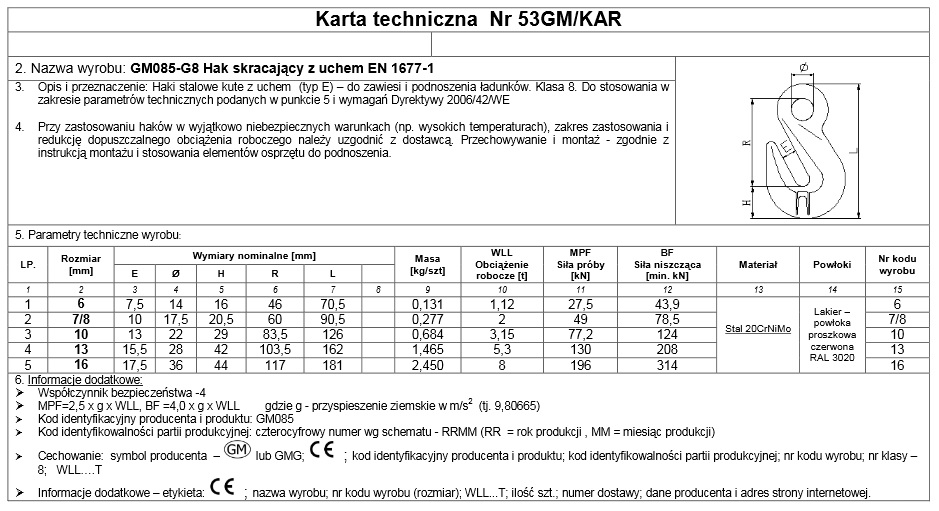 1 х вкорочення гачка з вухом 10 мм клас 8 EN 3.15T