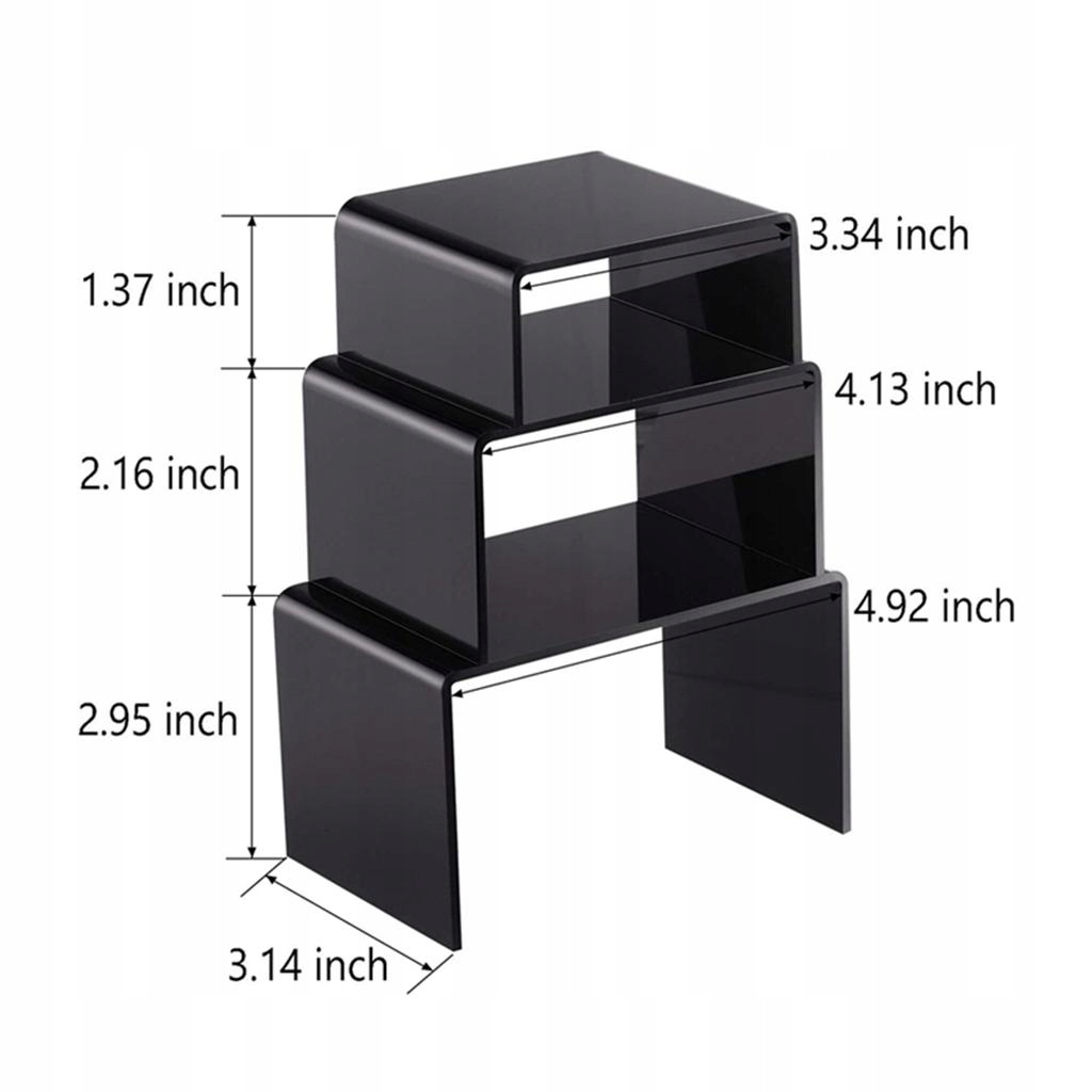 Пакет включає: 1 набір чорних акрилових підставок для дисплеїв, включає 3 одиниці підставок для дисплеїв у 3 різних розмірах