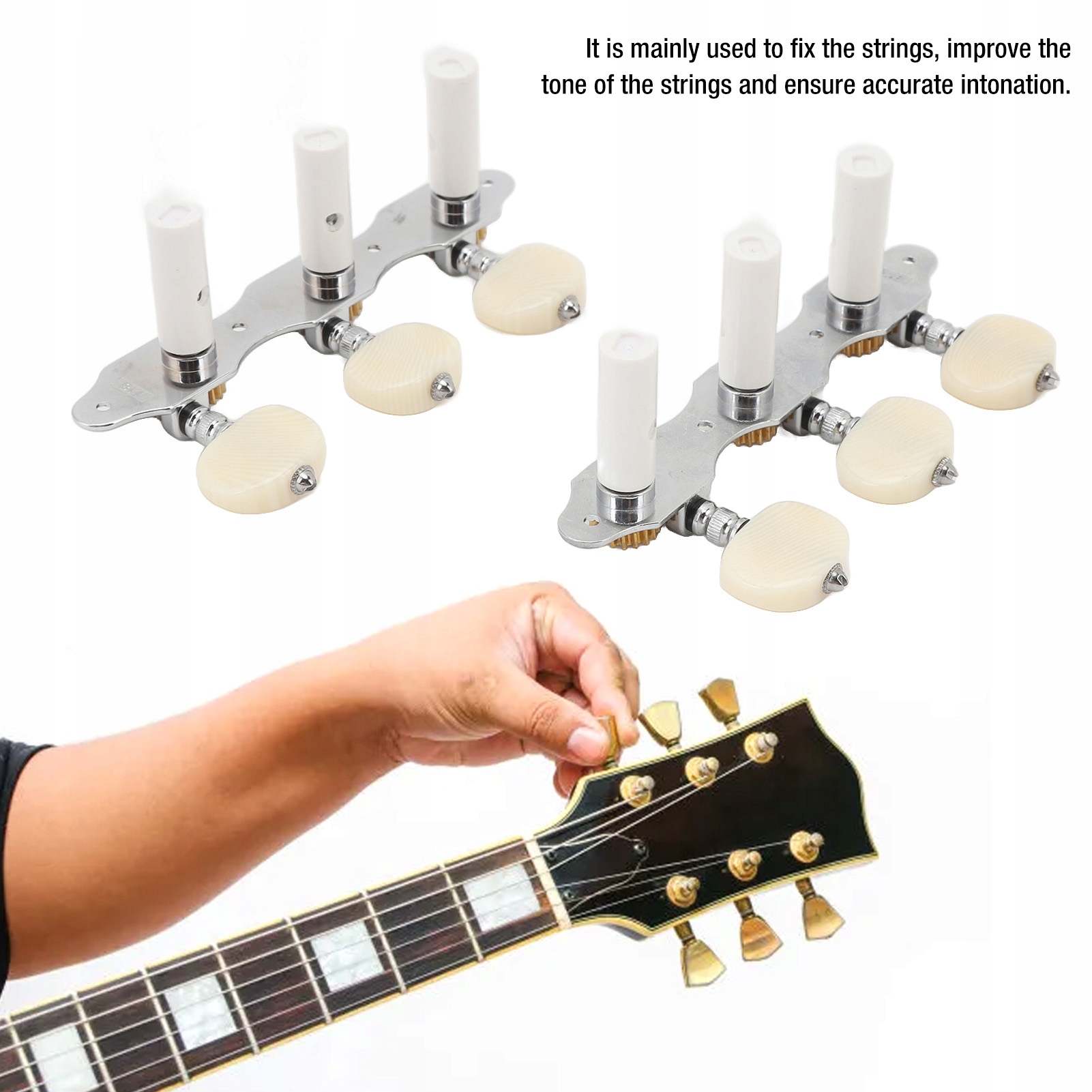 2. Багатофункціональність: ця клавіша налаштування є багатофункціональною та в основному використовується для утримання струн на місці, покращення тону струн і забезпечення точної інтонації. Якщо ваші ручки налаштування гітари пошкоджені або старі, ці нові ручки налаштування гітари стануть ідеальною заміною.