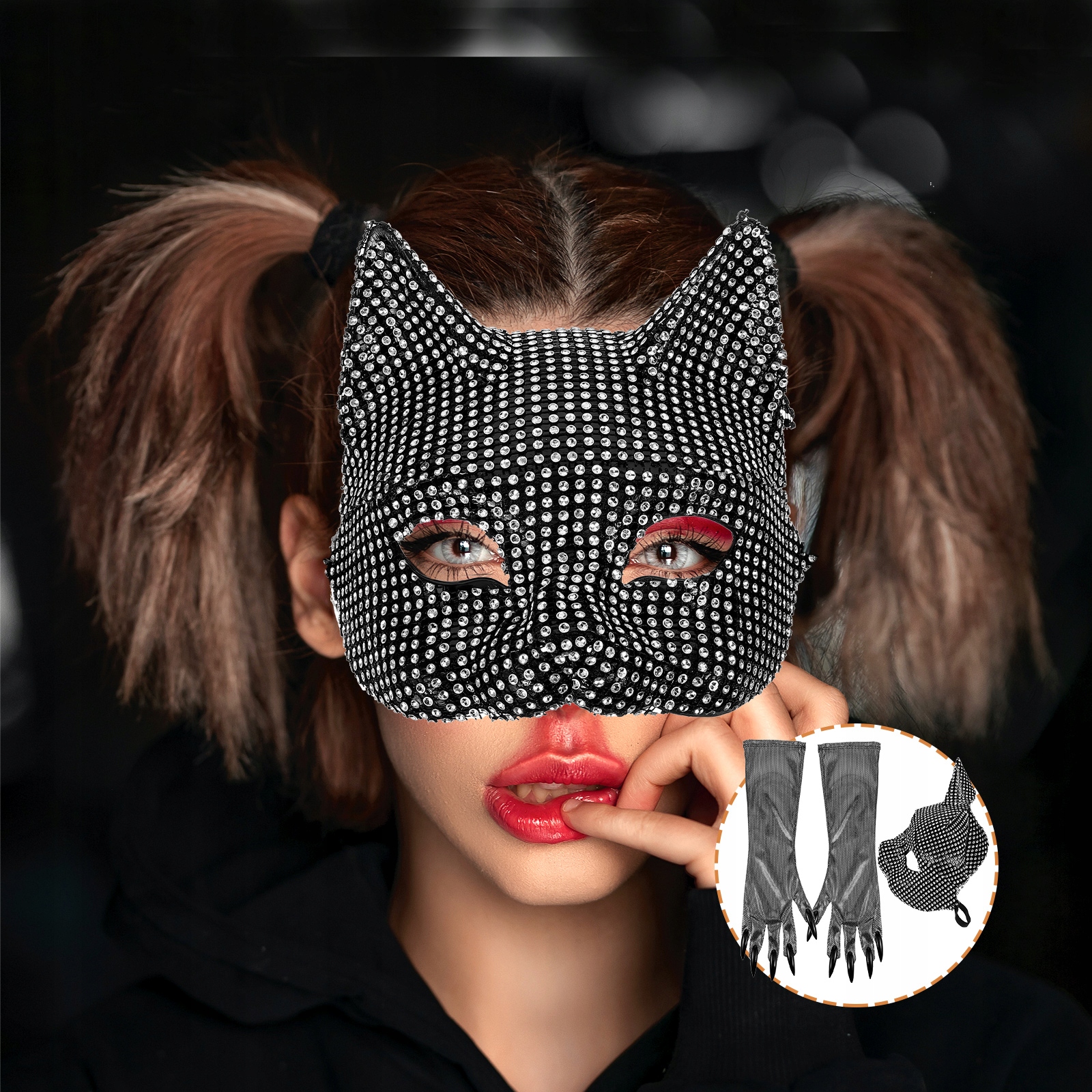 1 комплект Хеллоуїн зі стразами Котяча маска Косплей Кот
