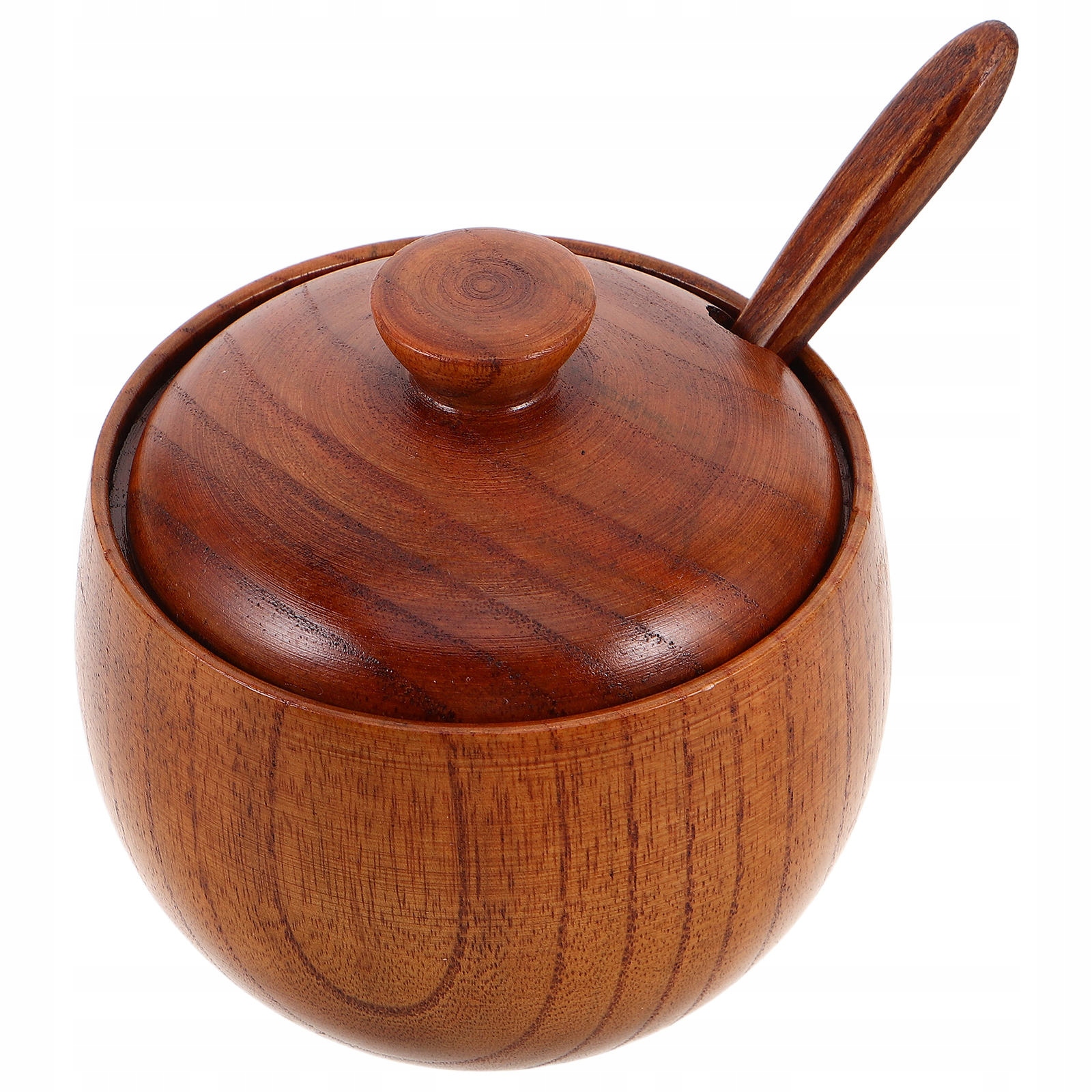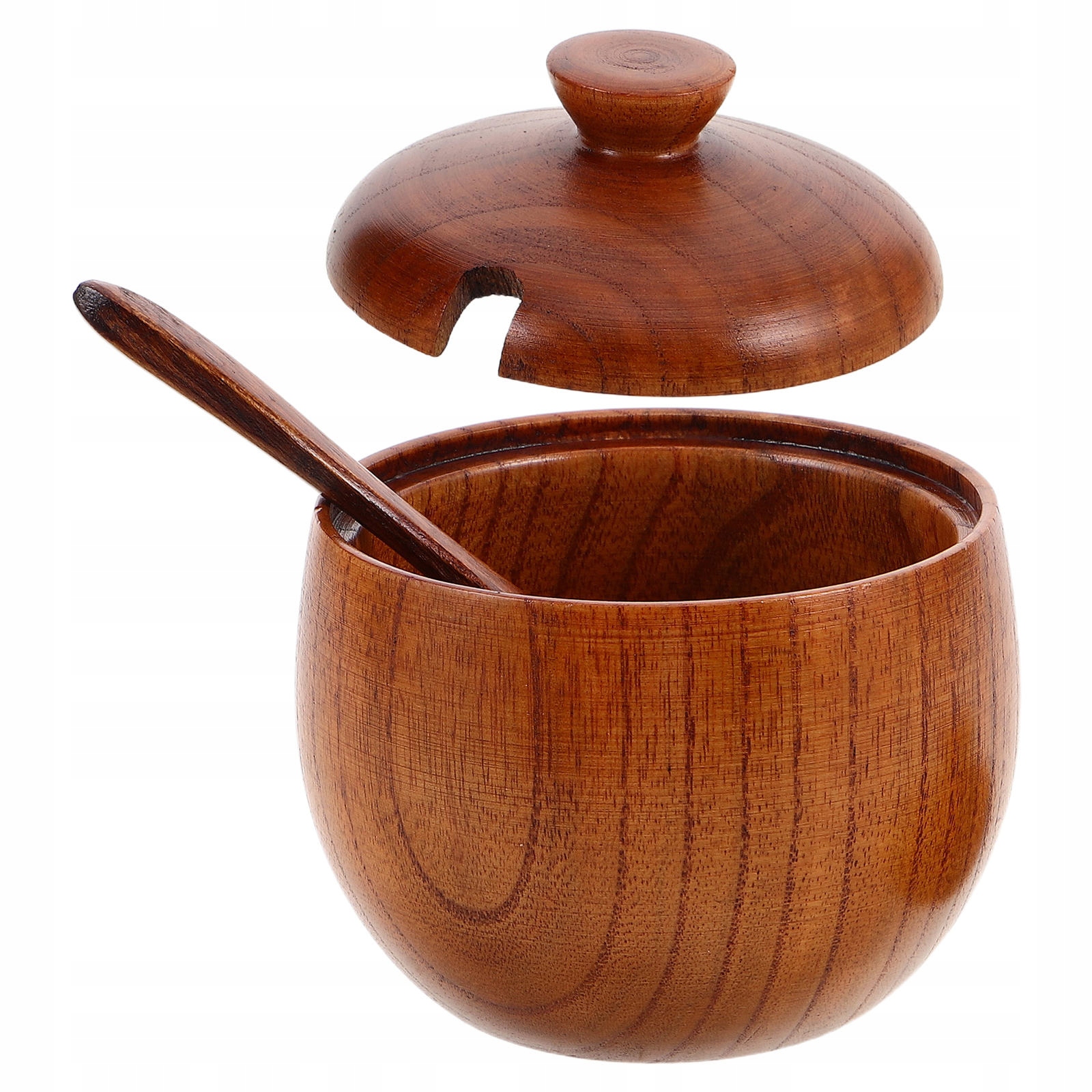 1 КОМПЛЕКТ КОРИЧНЕВОЇ ДЕРЕВ’ЯНОЇ БАНКИ З КРИШКОЮ І ЗРУЧНОЮ ЛОЖКОЮ