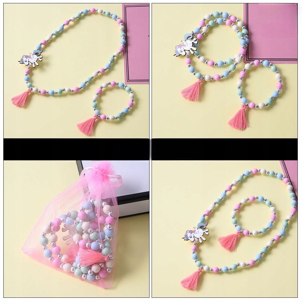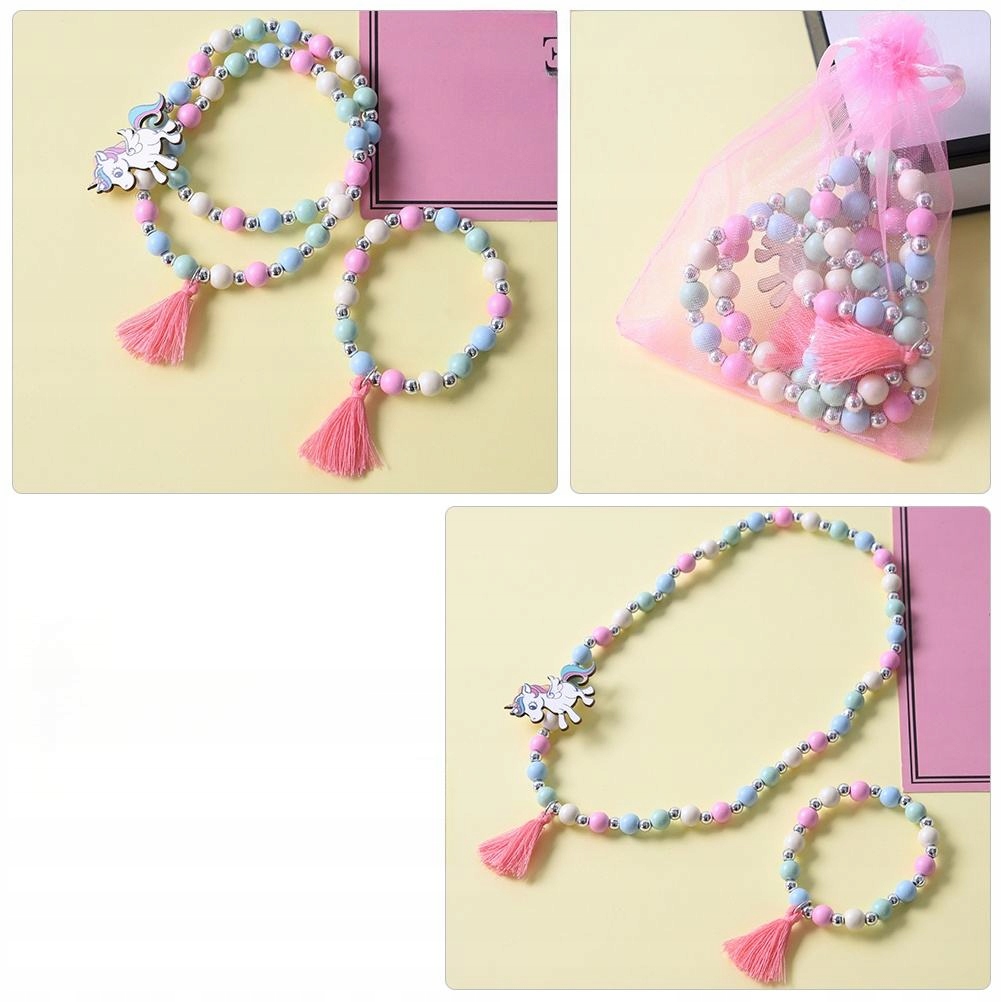 ✅З креативними дерев’яними намистинами та милим дизайном підвіски з єдинорогом цей браслет і намисто ще чарівніші.