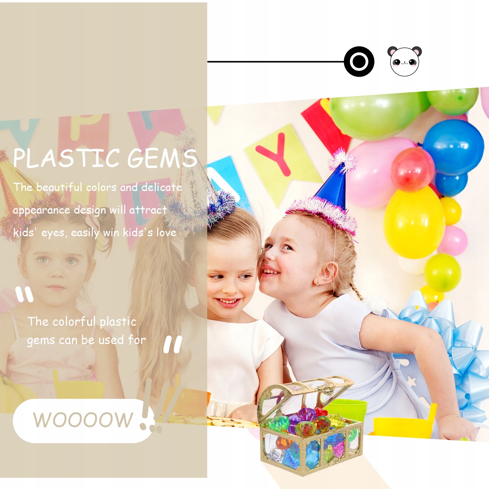 Барвисті пластикові дорогоцінні камені виготовлені з надійного матеріалу, яким безпечно грати діти. Він ідеально підходить для тематичної вечірки, дитячого дня народження, вечірки з пошуку скриньок. Тонка робота, яскравий колір, декоративний і корисний, можна використовувати для рукоділля.