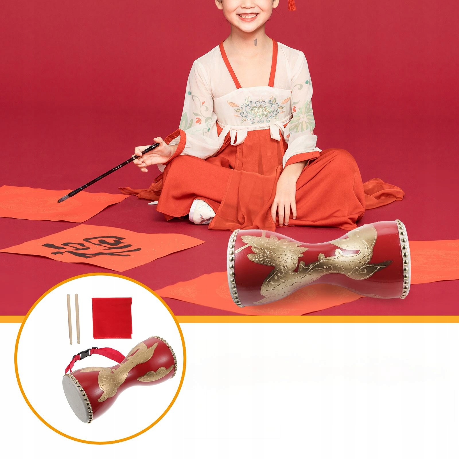 ✅Традиційні китайські барабани на поясі надруковані сприятливими драконами для передачі радість