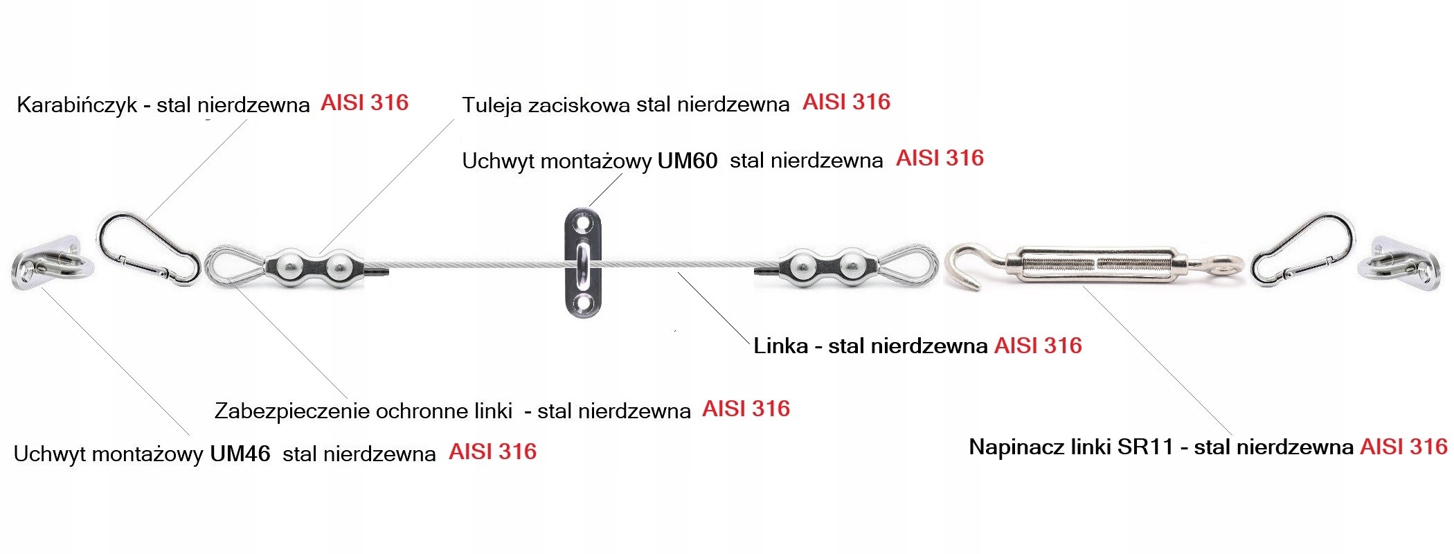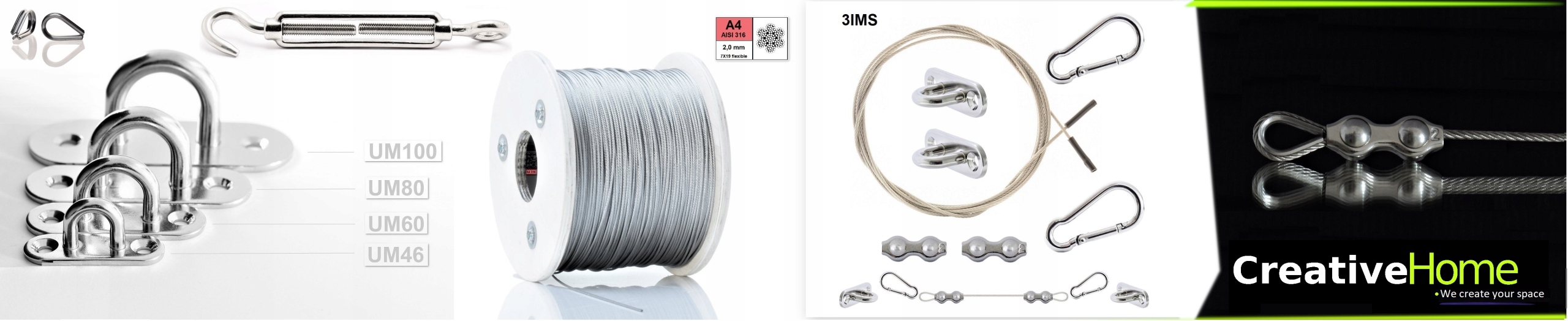 - Виготовлений з найвищої якості нержавіючої сталі, стійкі до кислоти, що використовується для виробництва різних видів аксесуарів у морській промисловості, в якій завдяки шкідливих умовах (сіль, хімія, вода), найвищу якість матеріалів. Посилання: 7x19 гарантує відмінну гнучкість та високу стійкість до деформації та розтягування.