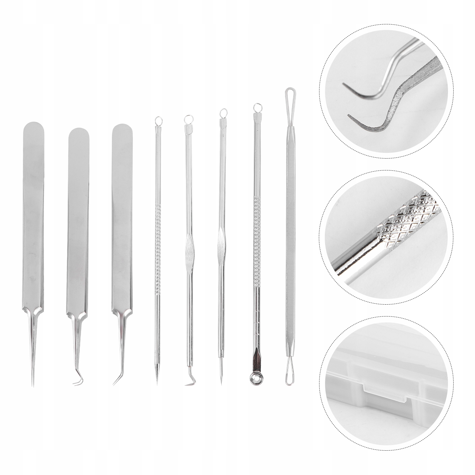 Різноманітні практичні засоби для видалення вугрів і вугрів виготовлені з хірургічної нержавіючої сталі дерматологічного класу без іржі та не викликають проблем з чутливістю, запобігають корозії та мінімізують ризик інфікування. .