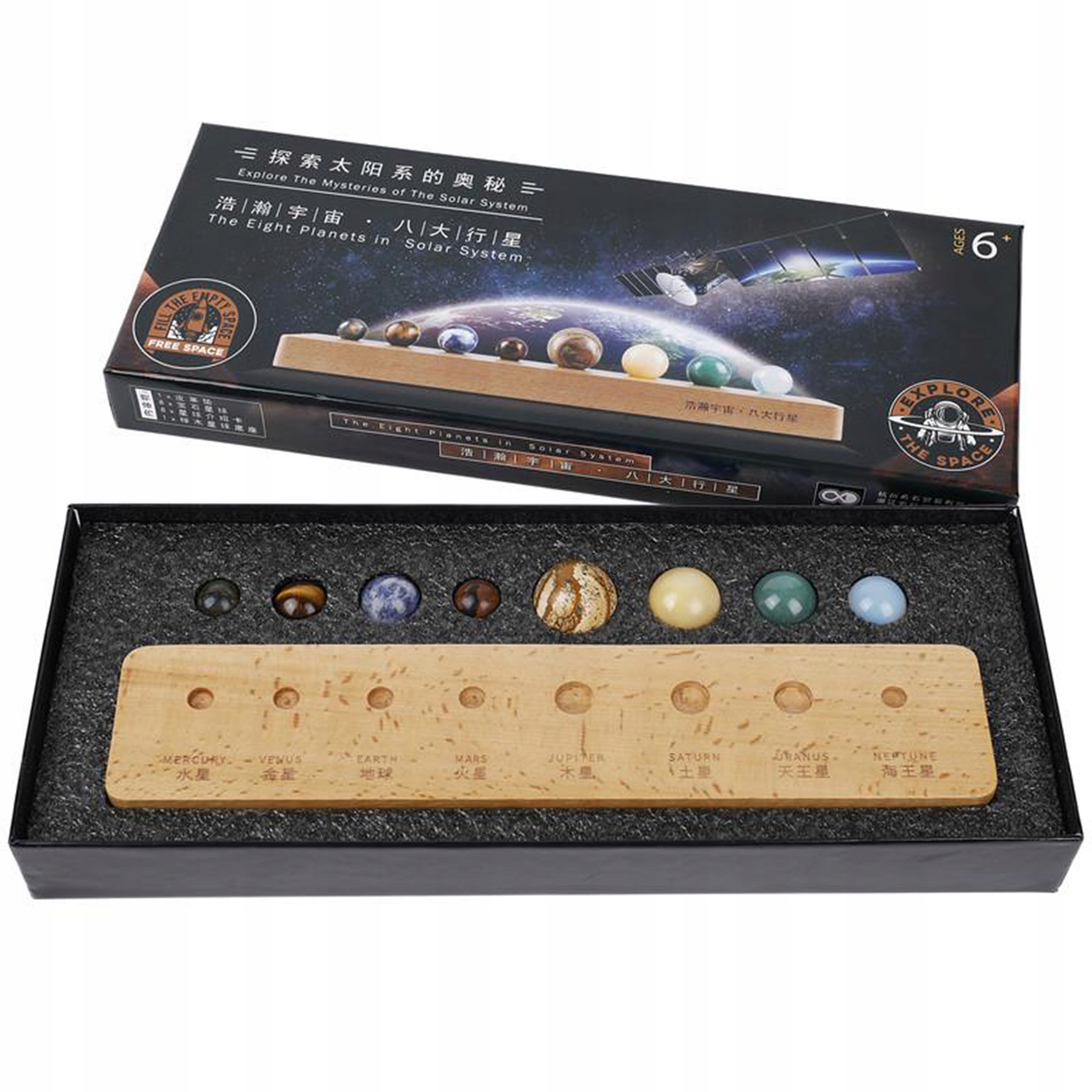 Натуральні 8 планет із дерев’яною основою Планети ручної роботи для прикраси столу в подарунок для дому