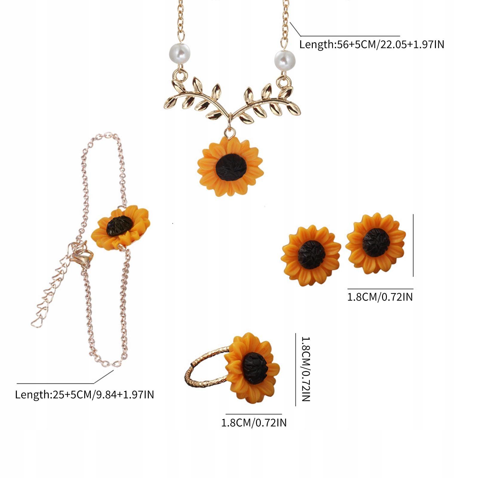 Сонячний квітковий ювелірний набір: 5 штук/набір 1х намисто з ланцюгом з підвіскою з сонячною квіткою, 1 -кратний браслет із сонячною квіткою, 1 пара сережок із сонячною квіткою, 1x кілець із сонячною квіткою. щоденна тканина.